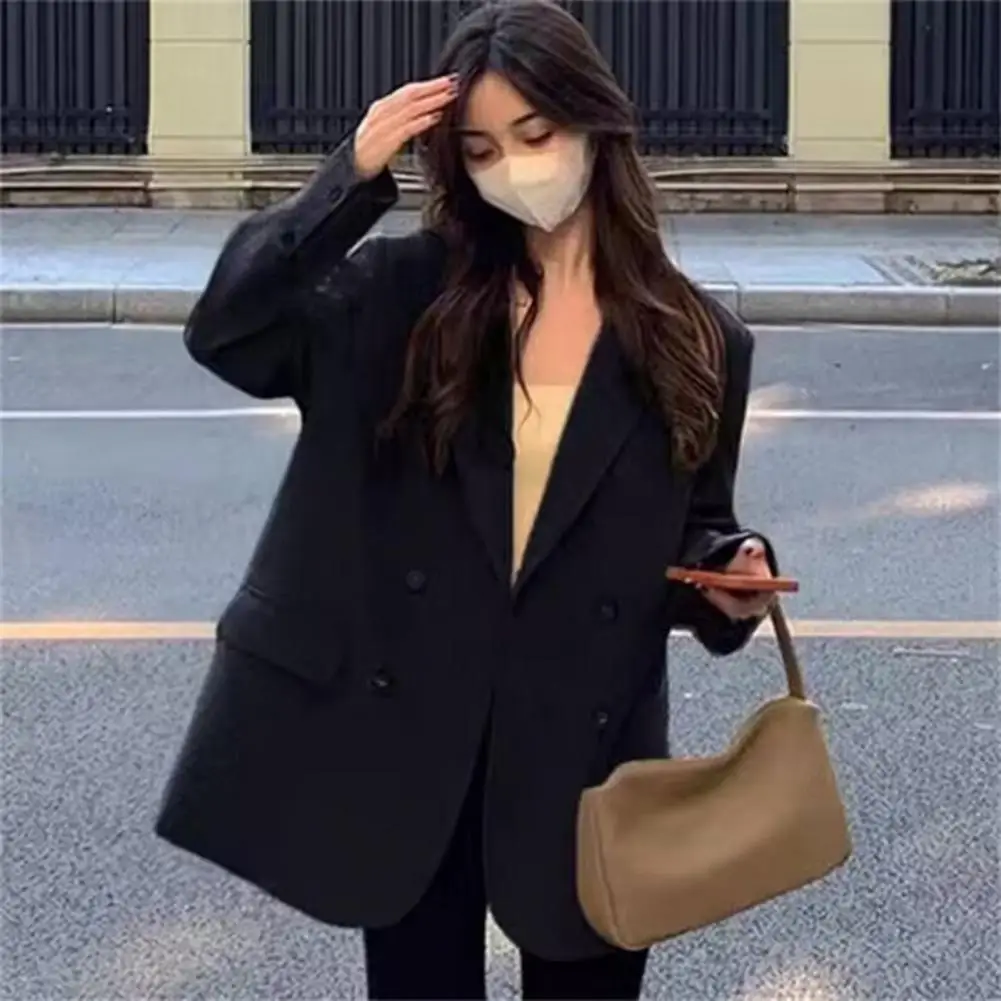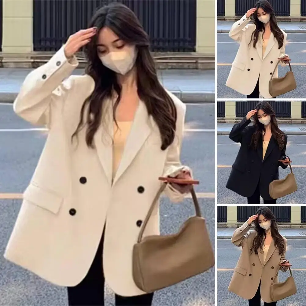 Versatile Suit Jacket Elegant Women's Double Breasted Suit Jacket with Lapel Design Flap Pockets Stylish Business for Versatile