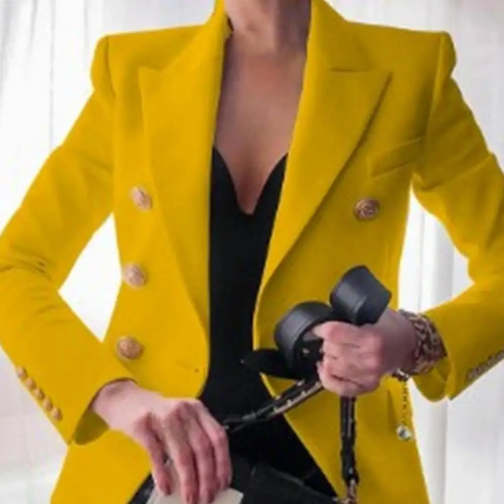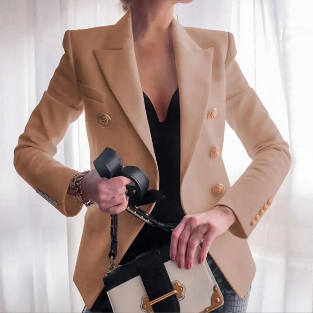 Autumn Suit Jacket Solid Color Women's Suit Coat Classic Lapel Design Loose Fit Double Breasted Outwear for Business Casual Wear