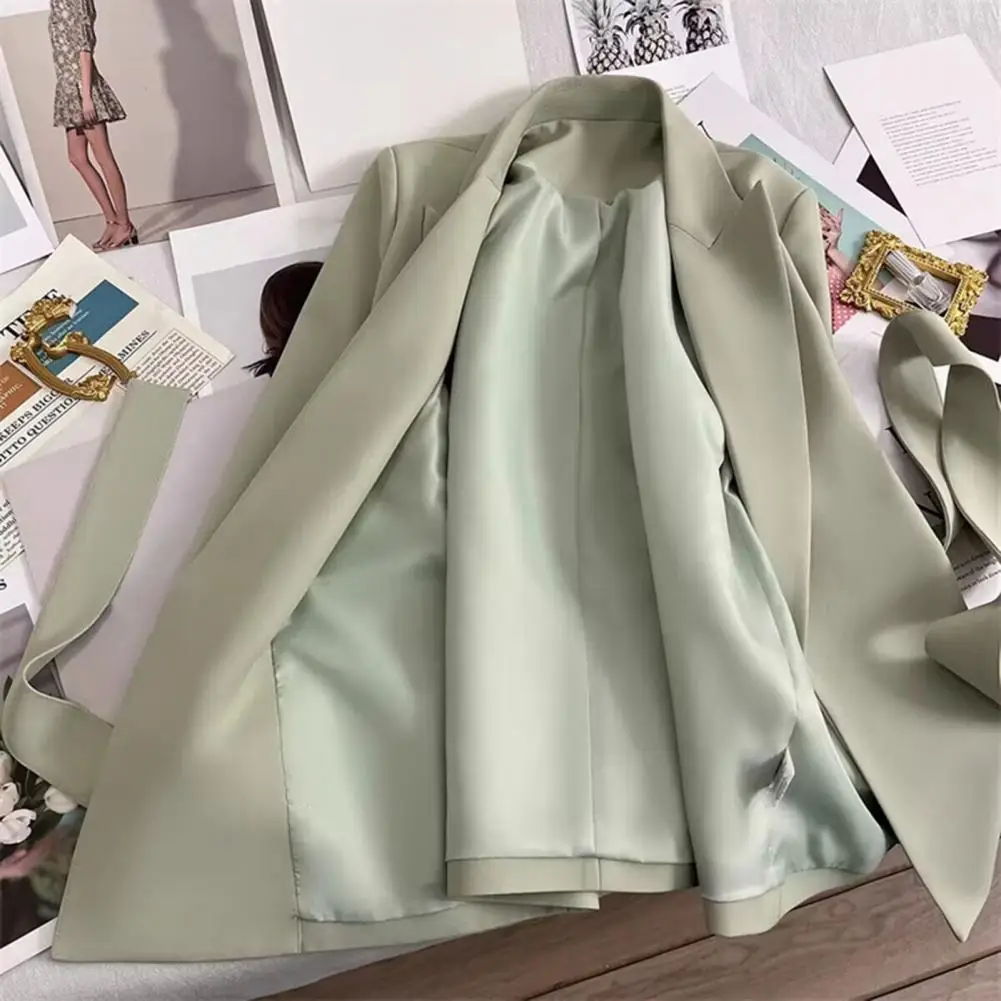 Lady Formal Coat Formal Business Style Women's Suit Coat with Belted Waist Slim Fit Long Sleeve Office Coat for Ol Commute Daily