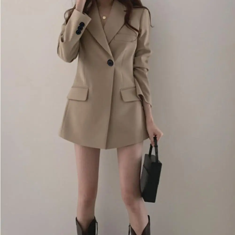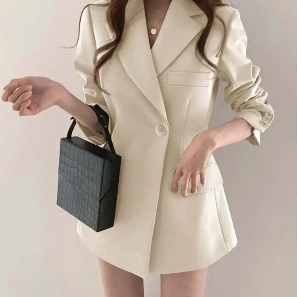 Autumn Suit Coat Elegant Women's Suit Coat with Lapel Single Button Closure Flap Pockets Stylish Work Outwear for Spring Autumn