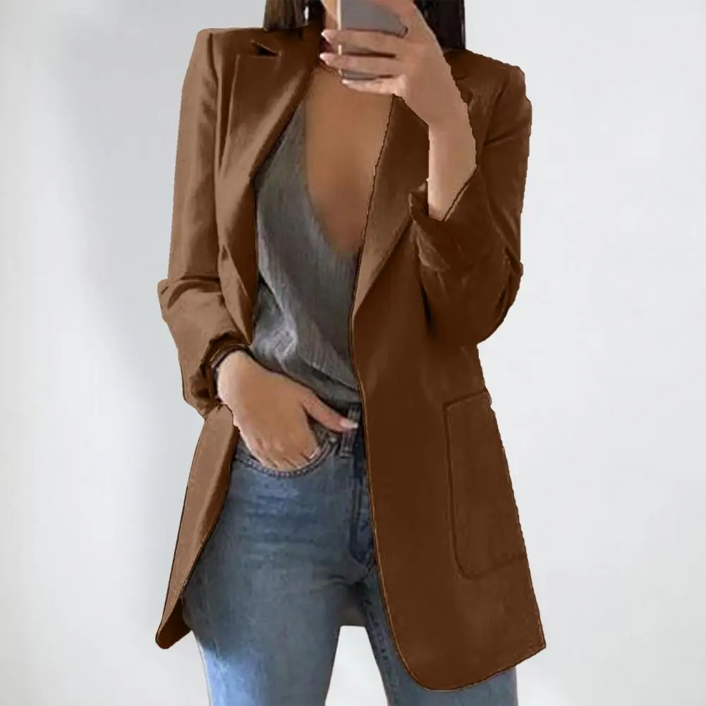 Office Lady Outwear Elegant Women's Suit Coat with Lapel Pockets for Business Office Slim Fit Solid Color Outwear Versatile