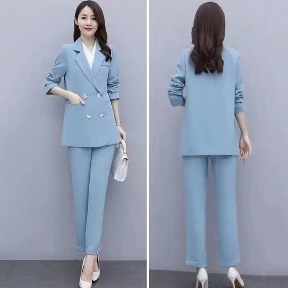 Name | Lady Formal Clothes Elegant Women's Business Suit Set with Double-breasted Coat High Waist Pants for Formal Office Wear Commute |