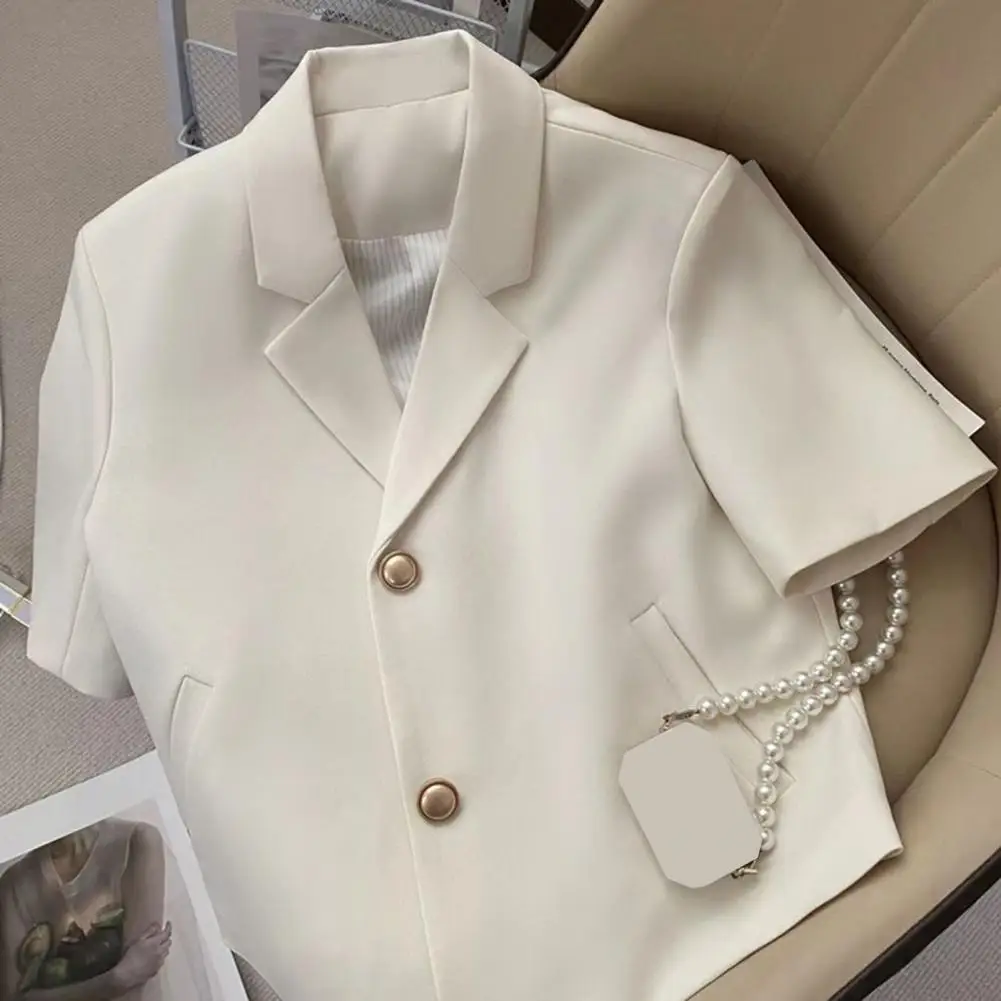 Women Suit Jacket Stylish Women's Office with Short Sleeves Double Button Closure Pockets Lightweight Suit Jacket for Work