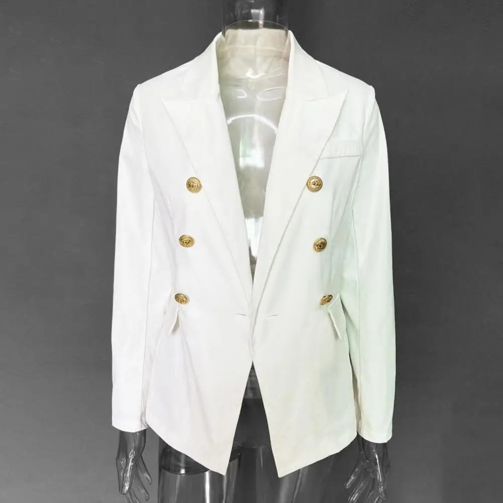 Commuting Style Solid Color Women's Suit Coat Classic Lapel Design Loose Fit Double Breasted Outwear for Business for Women