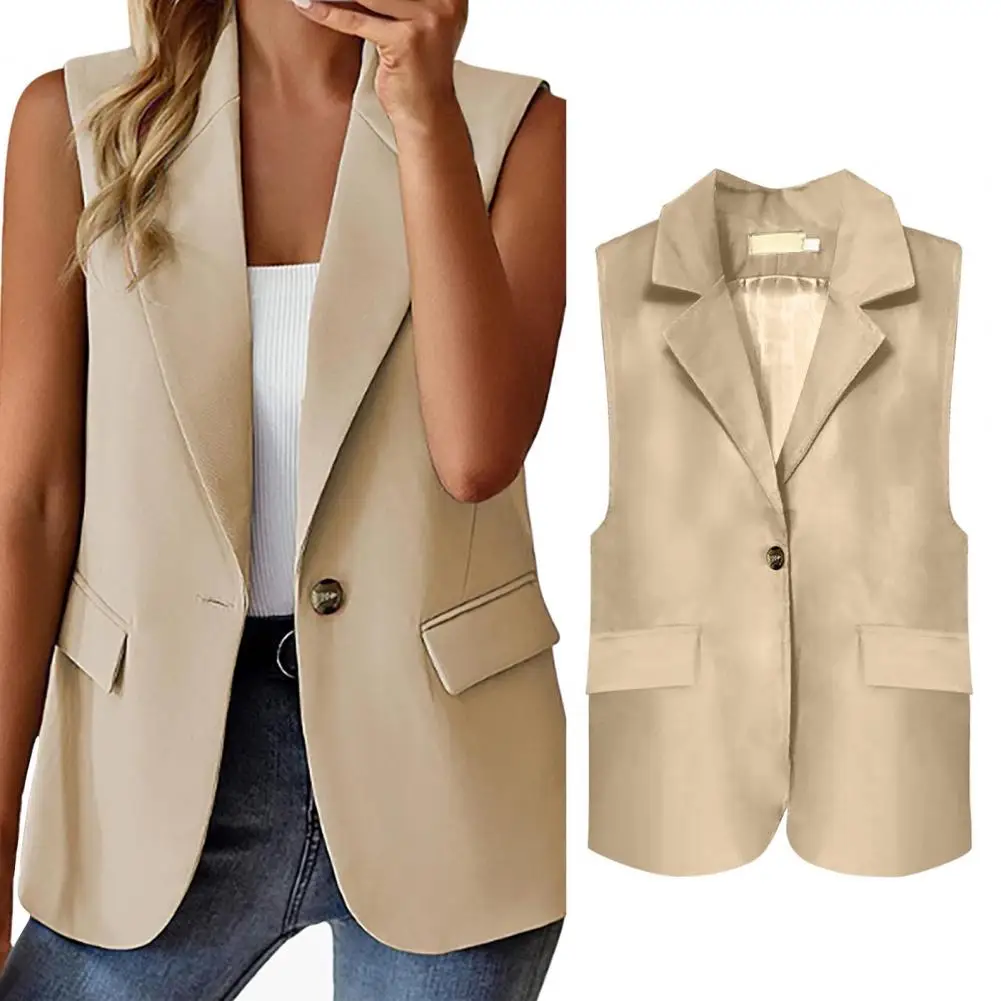 Women Formal Waistcoat Women Lapel Vest Stylish Women's Sleeveless Business Vest Coat with Lapel Pockets Classic Ol for Summer