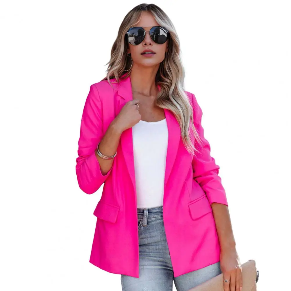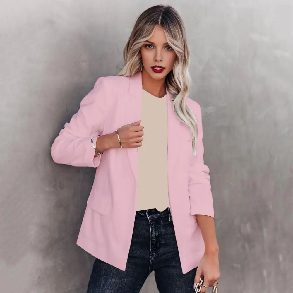Women Suit Coat Elegant Lapel Suit Coat for Women Stylish Business Outwear with Flap Pockets Solid Color Polyester for Everyday