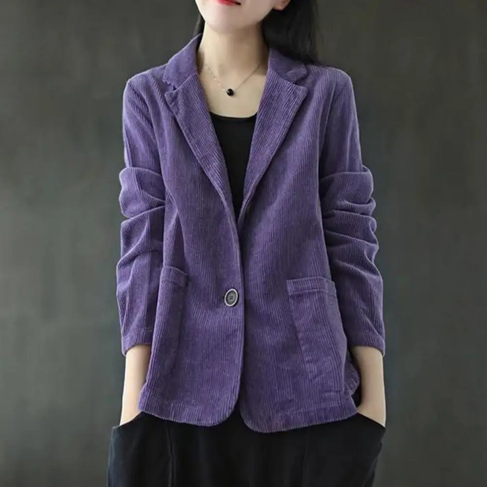 Slim Fit Suit Coat Retro Corduroy Suit Coats for Men Women Slim Fit Single-breasted Jackets with Lapel Long Sleeve Pockets