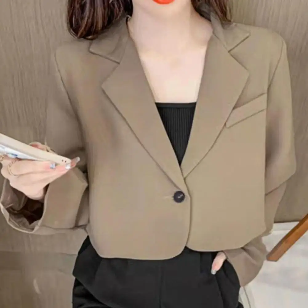 Autumn Blazers Women Cropped Solid Simple Single-button Classic All-match Teens Elegant Mujer Outwear Design Chic Ins Stylish