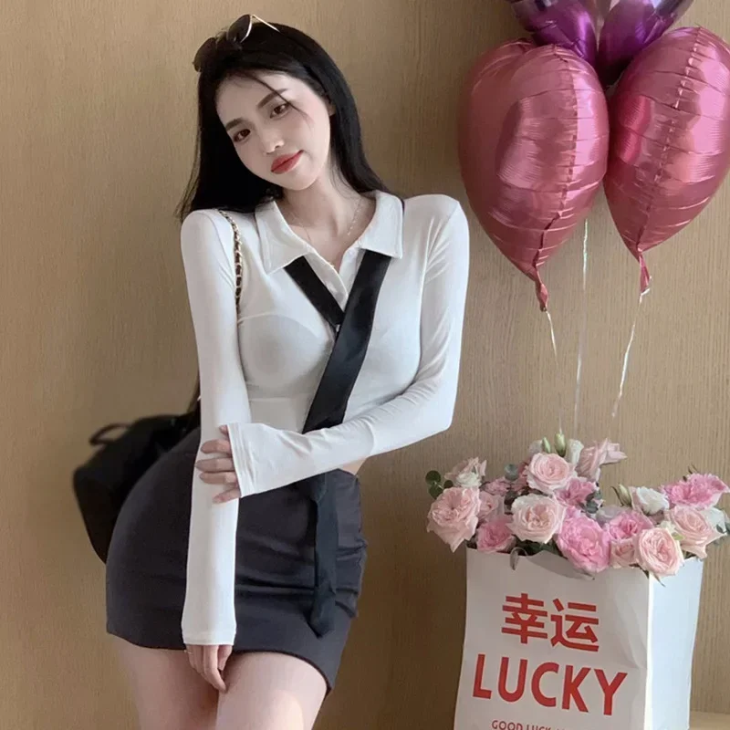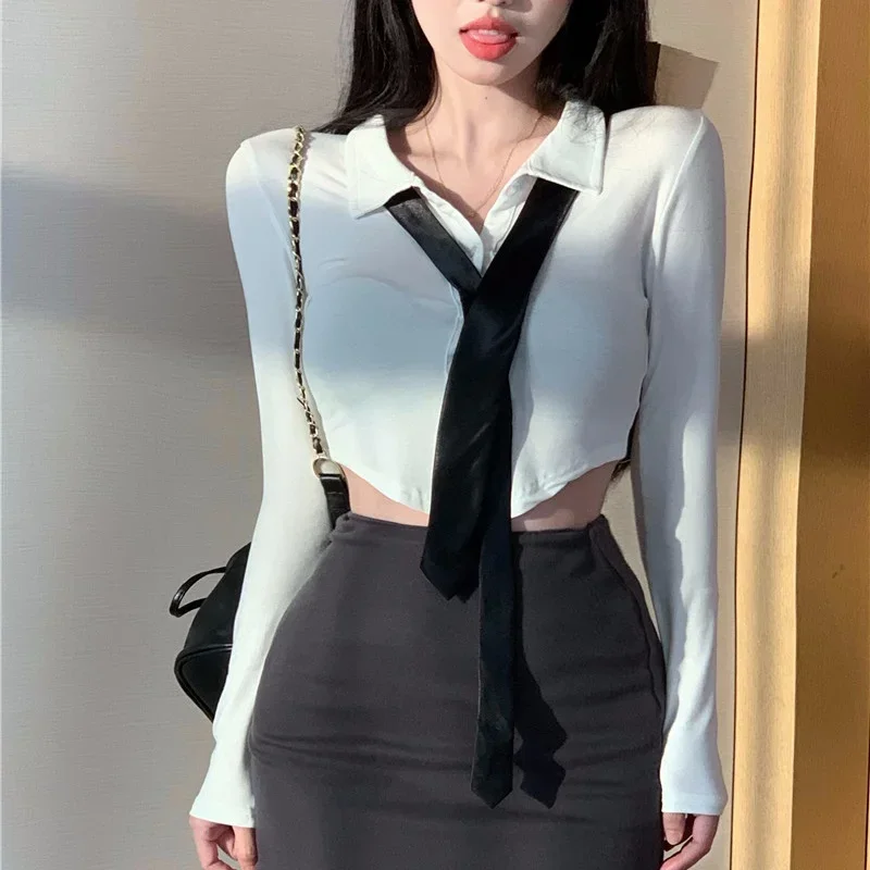 Name | Shirt Lapel Slim Short Skirt Including Tie Women's Suit Y2K |
