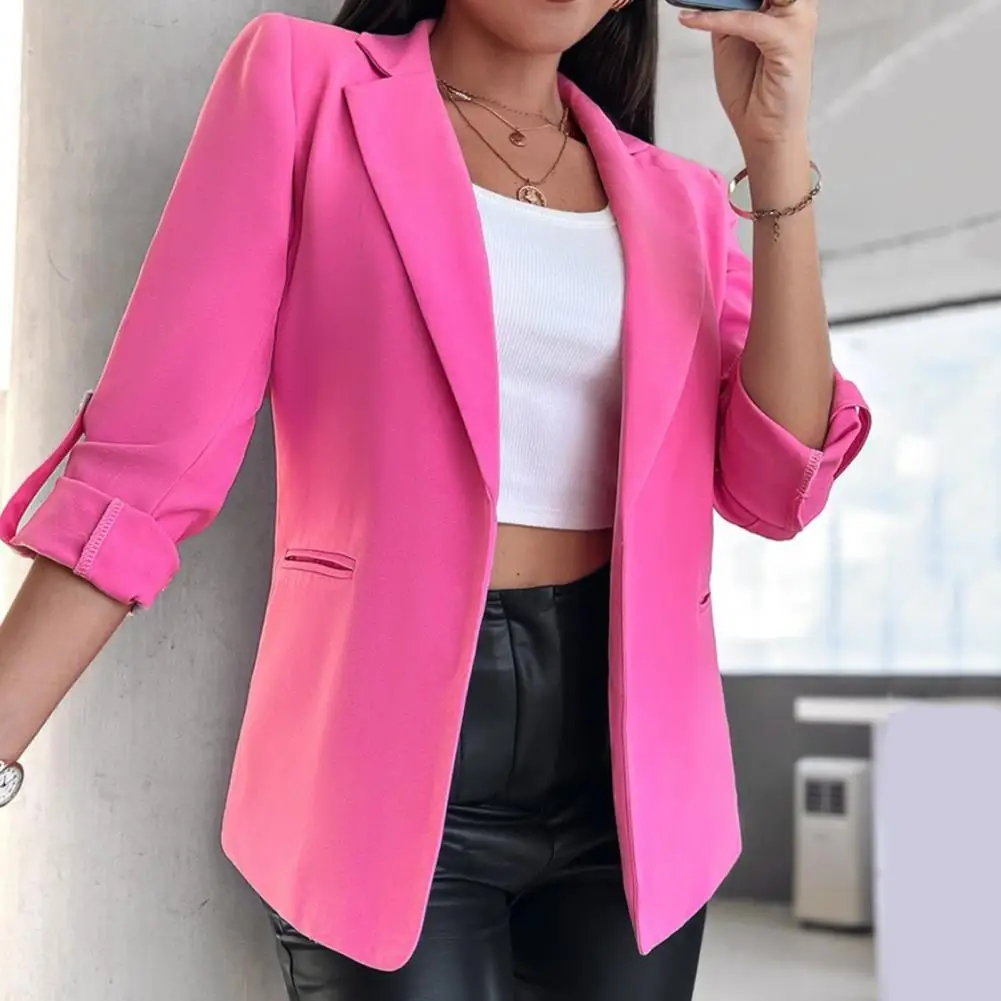 Fashon Women Suit Coat Autumn Winter Long Sleeved Cardigan Coat Casual Lapel Solid Color Suit for Business Daily Wear