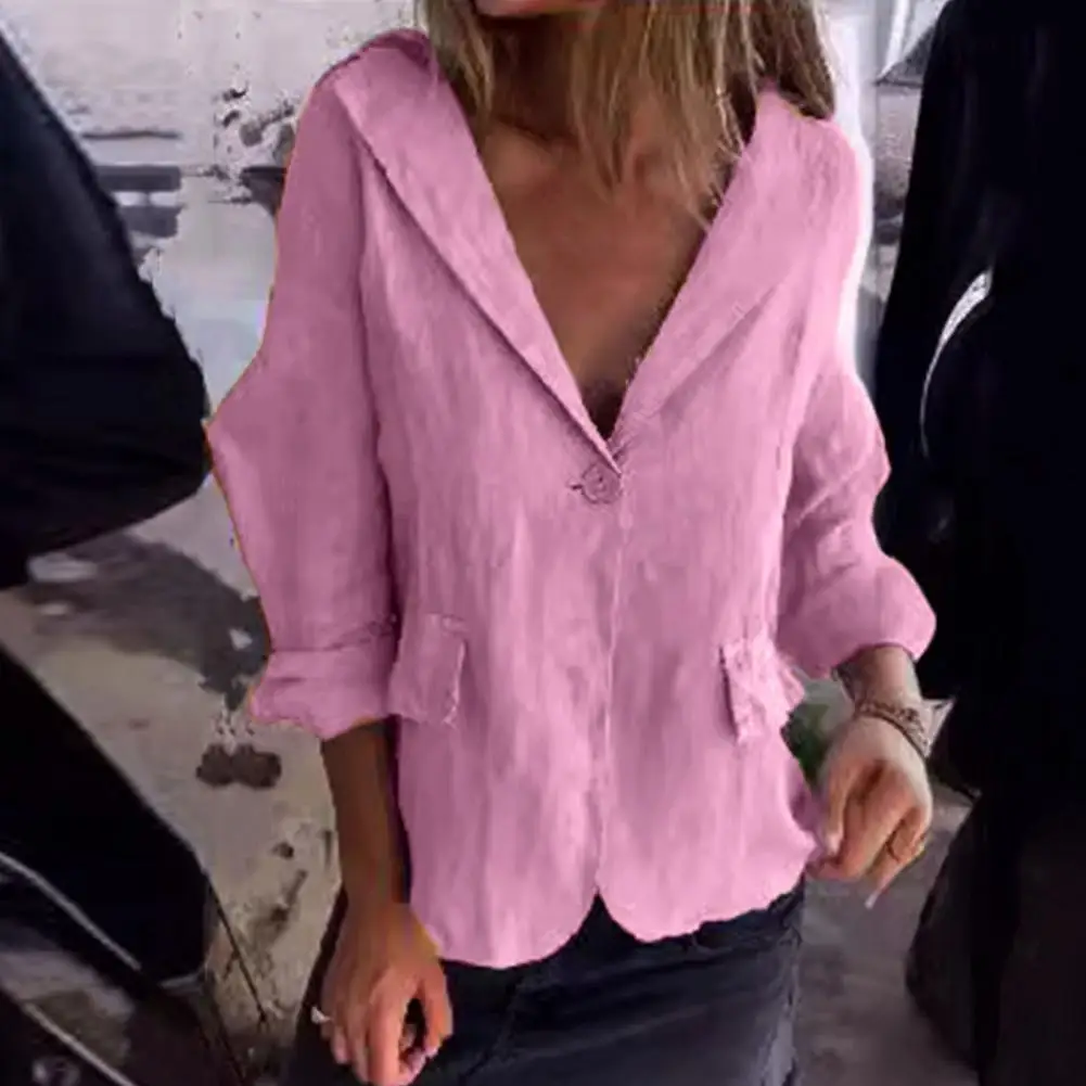 Suit Coat Elegant Lapel Suit Jacket for Women Stylish Spring Autumn Coat with Long Sleeve Solid Color Loose Fit for Ladies