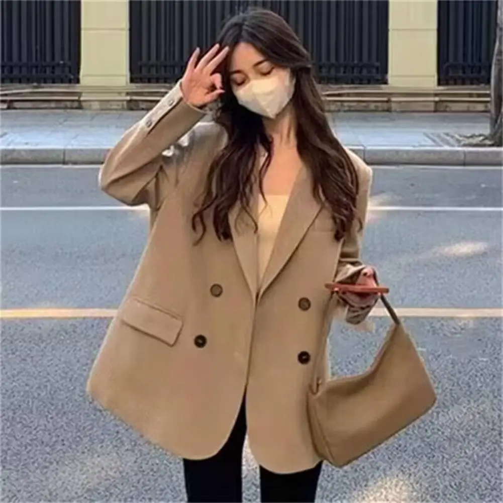 Women Suit Jacket Lapel Long Sleeve Suit Coat Elegant Women's Double Breasted Suit Jacket with Lapel Design Flap for Versatile