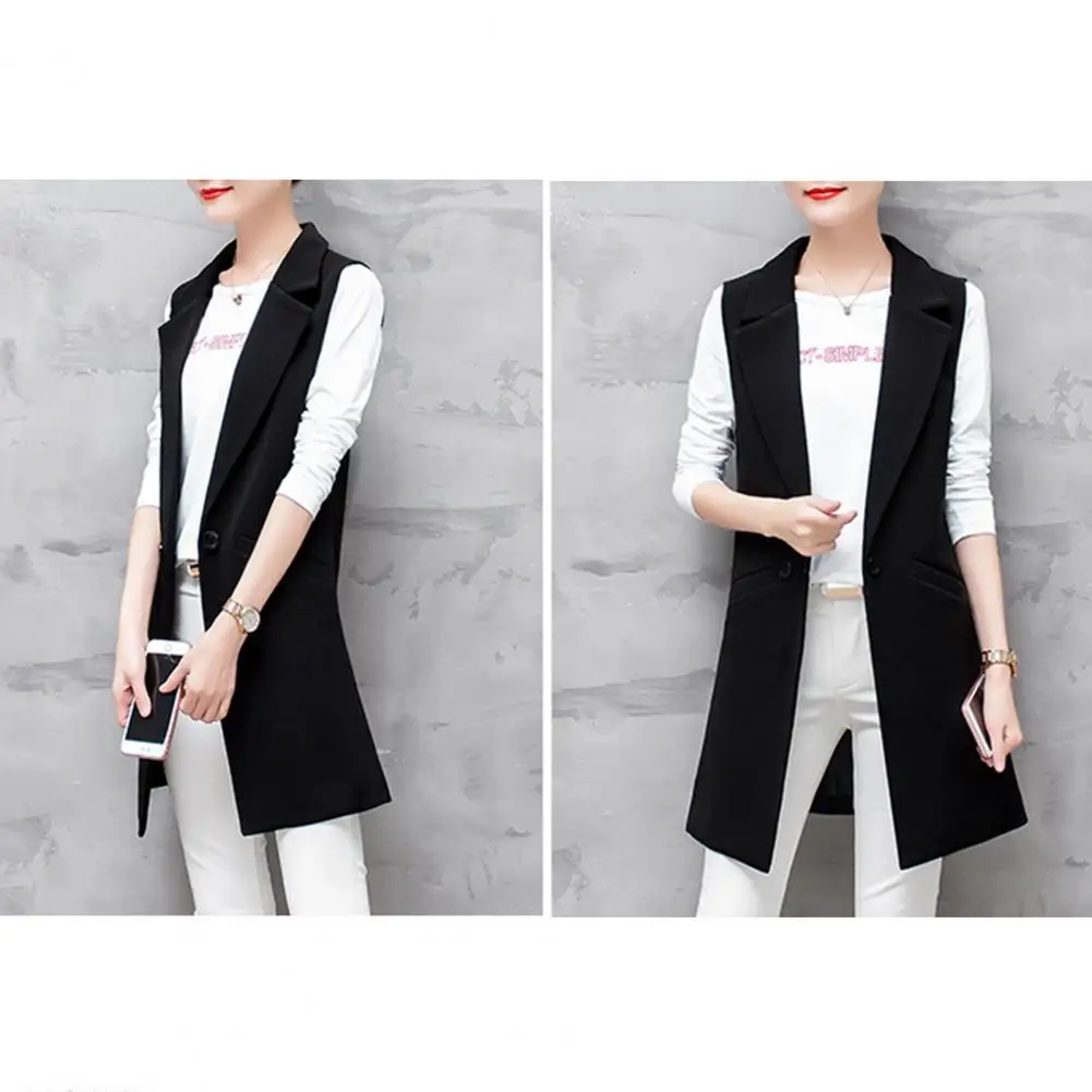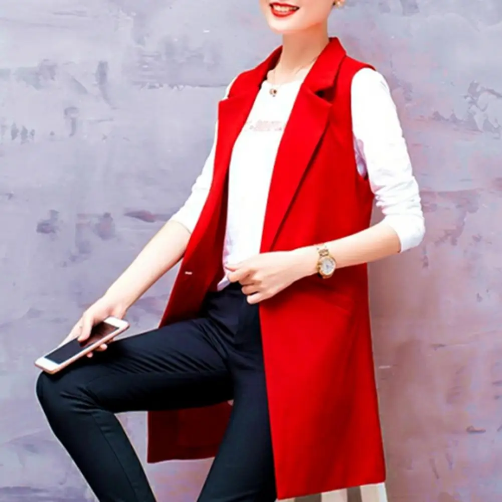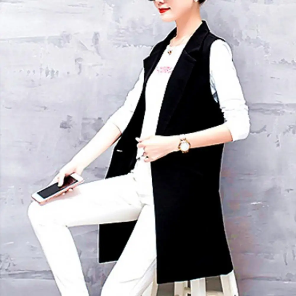 Cold Weather Vest Jacket for Women Elegant Sleeveless Women's Suit Coat Mid-length Lapel Jacket with Thin Pockets Formal Ol