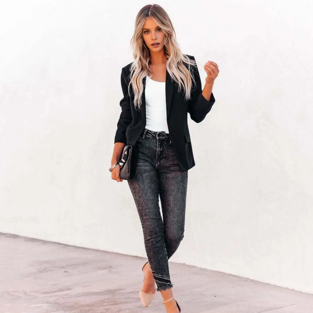 Women Jacket Elegant Lapel Suit Coat for Women Long Sleeve Open Front Business Outwear with Flap Pockets Stylish for Everyday