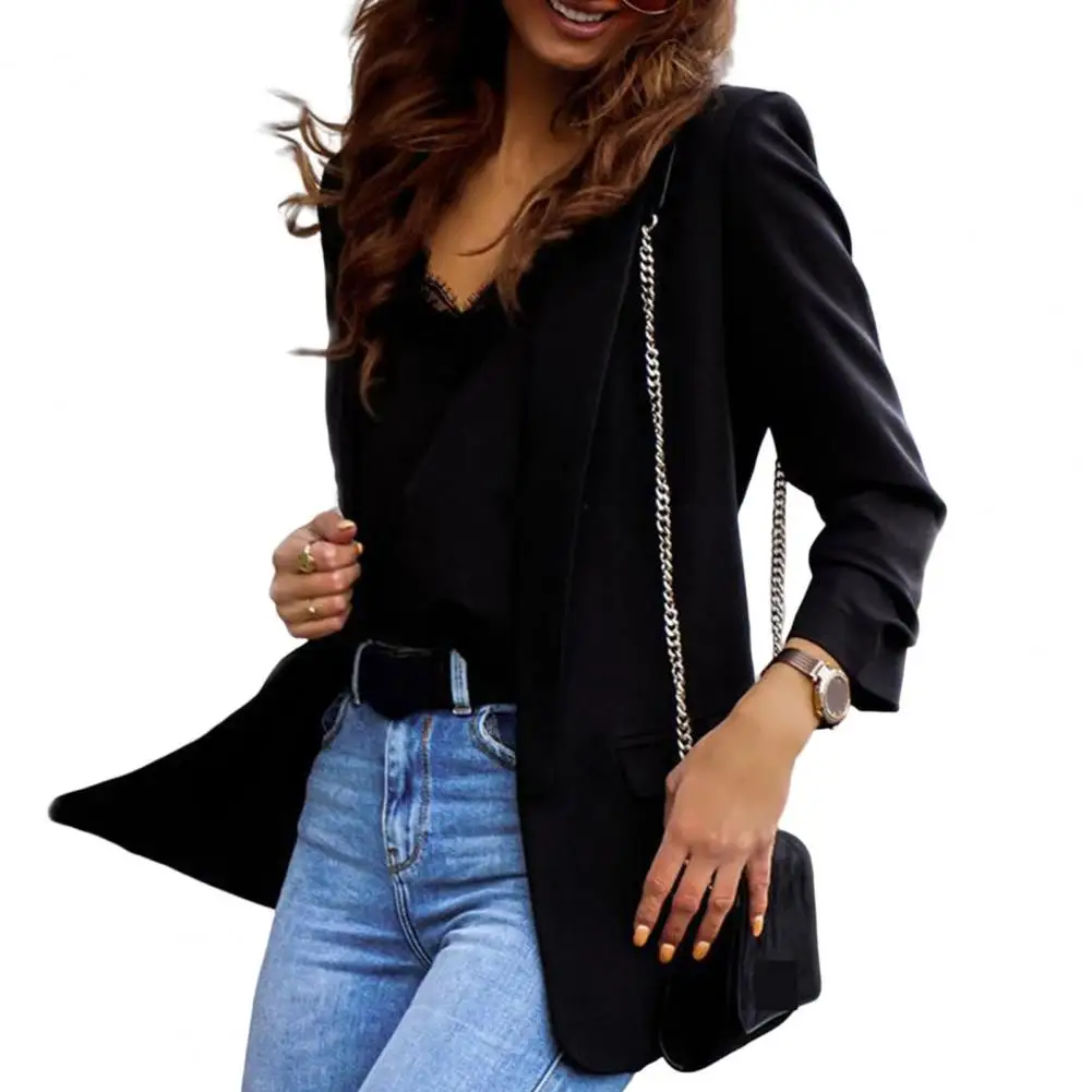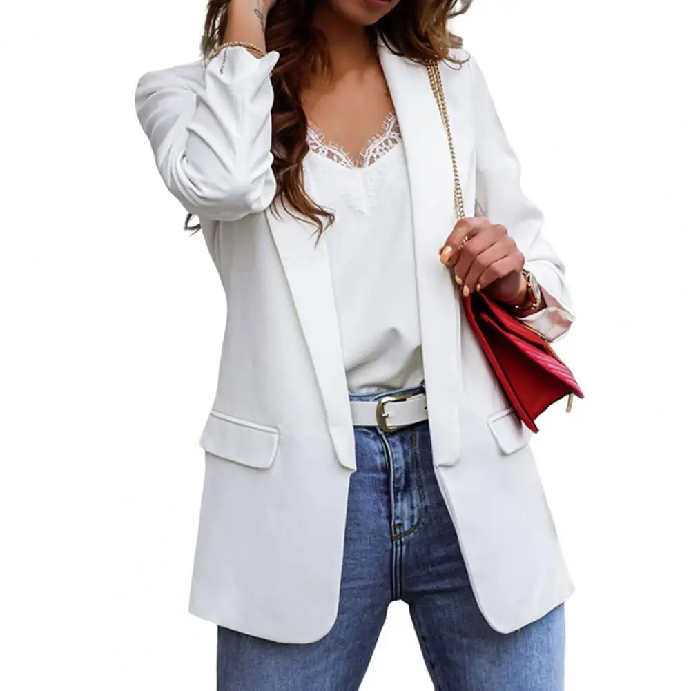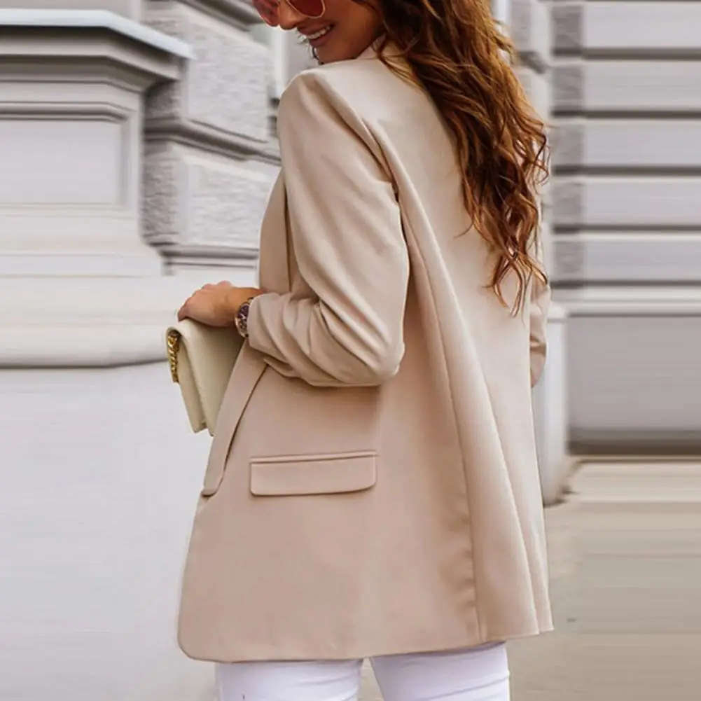 Women Autumn Blazer Solid Color Pockets OL Style Cardigan Formal Long Sleeves Lady Suit Coat Female Clothes