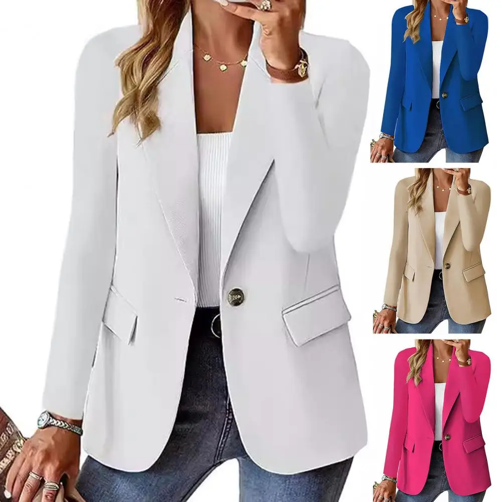 Loose Fit Business Coat Elegant Women's Business Suit Jackets with Lapel Pockets Stylish Workwear for Professional for Office
