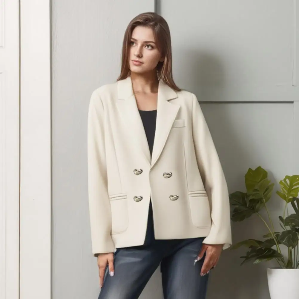 Solid Color Suit Coat Elegant Lapel Women's Suit Coat with Double Breasted Design Stylish Office Lady Outwear for Casual Formal