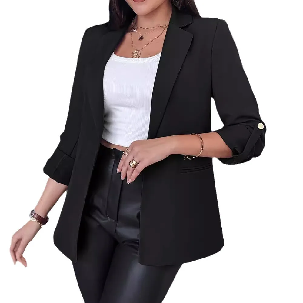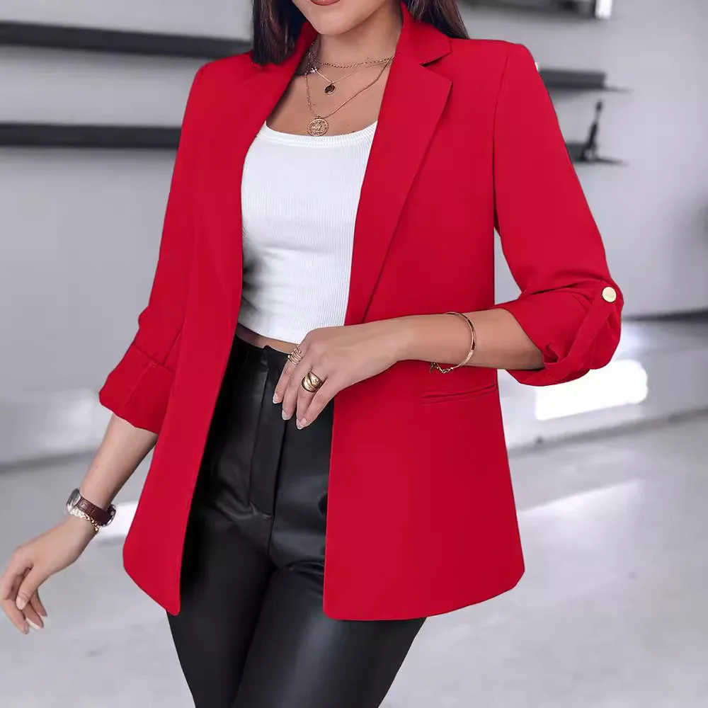 Women Autumn Winter New Rolled Sleeves Fashion Suit Jacket Solid Color Blazer Jackets
