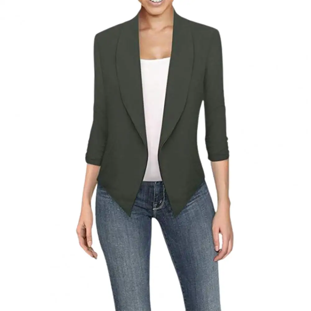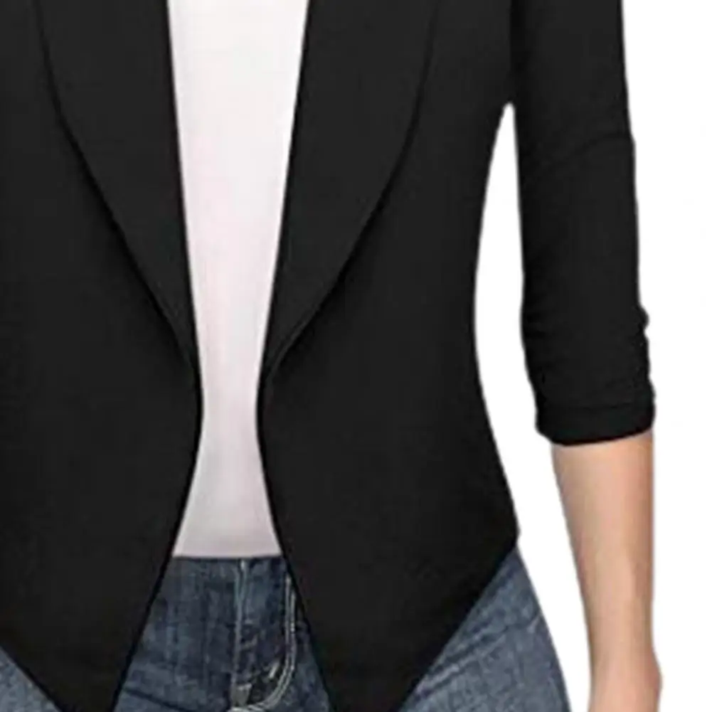 Women Suit Jacket OL Open Stitch Lapel Slim Long Sleeve Irregular Hem Cardigan Suit Coat Blazer Formal Clothing