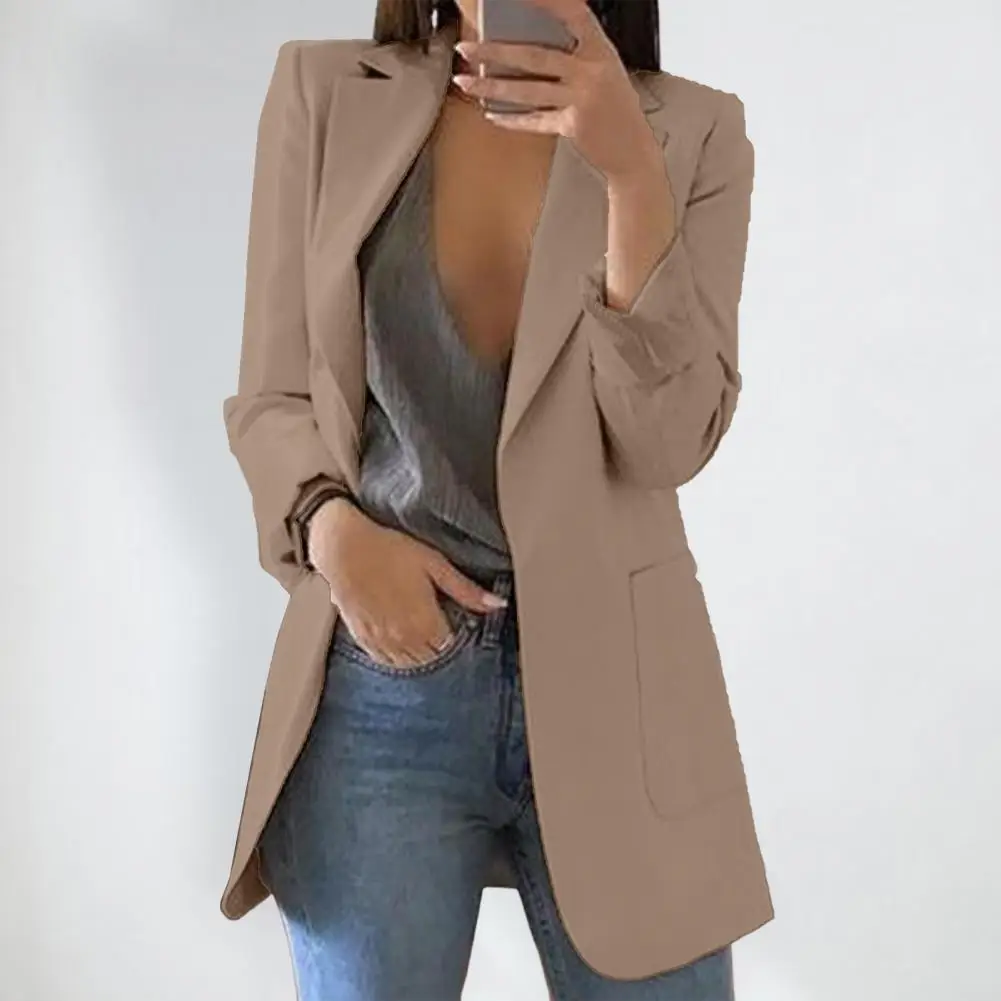 Classic Women Suit Jacket Elegant Women's Suit Coat with Lapel Pockets for Business Office Slim Fit Solid Color Outwear
