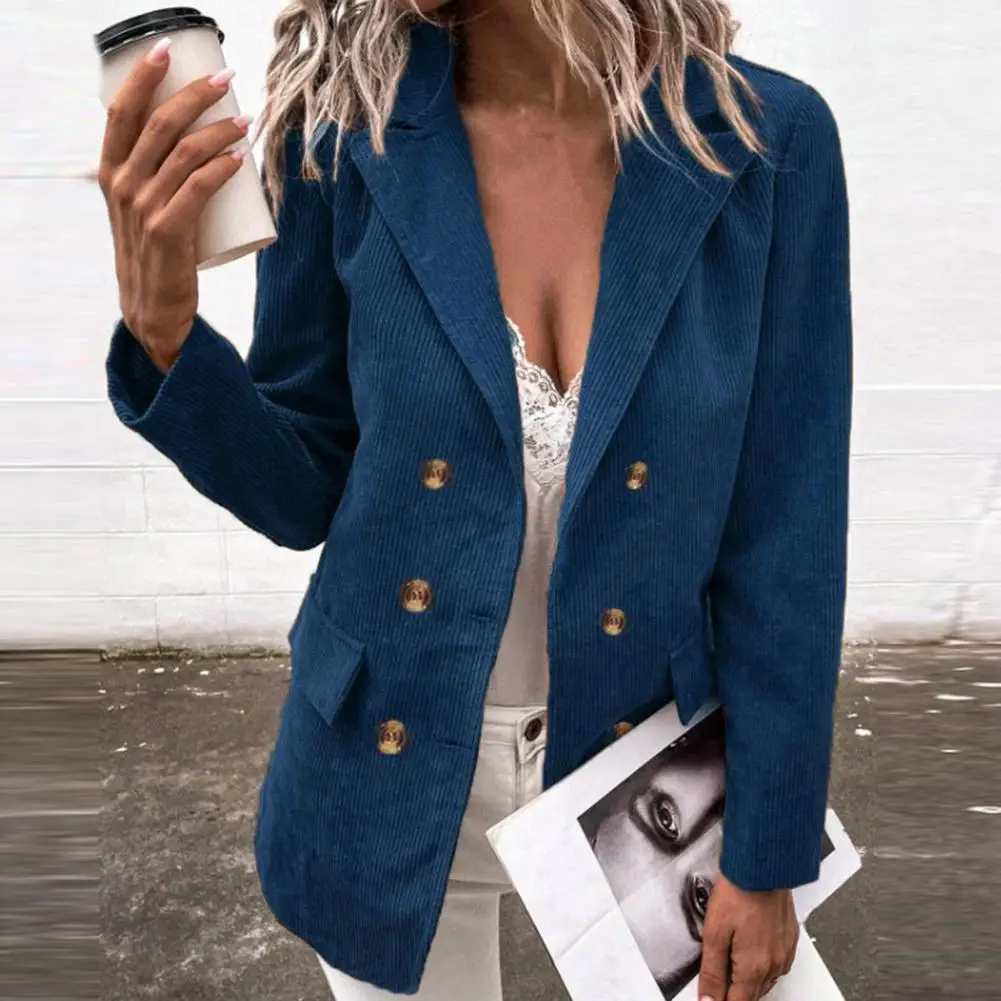 Popular Office Blazer Long Sleeves Cold Resistant Women Coat Elegant Office Lady Corduroy Solid Party Jacket