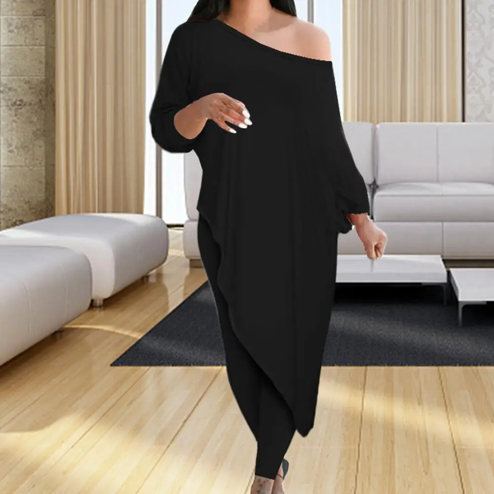 Name | Female 2Pcs/Set Unique Ladies Loose Blouse Skinny Trousers Suit Comfortable Pencil Pants Slash Neck for Outdoor |