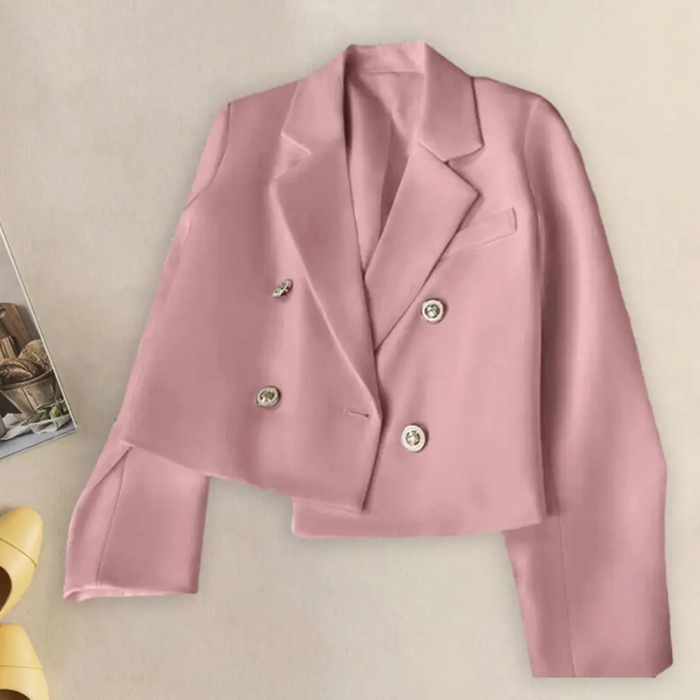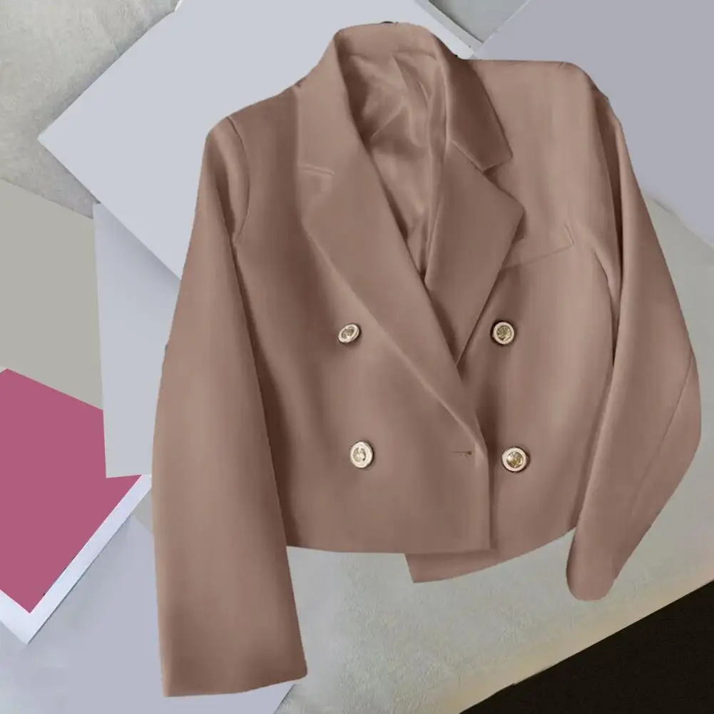 Spring Autumn Coat Women Lapel Cropped Chic Autumn Women's Double Breasted Cropped Lapel Long Sleeve Solid Color for Streetwear