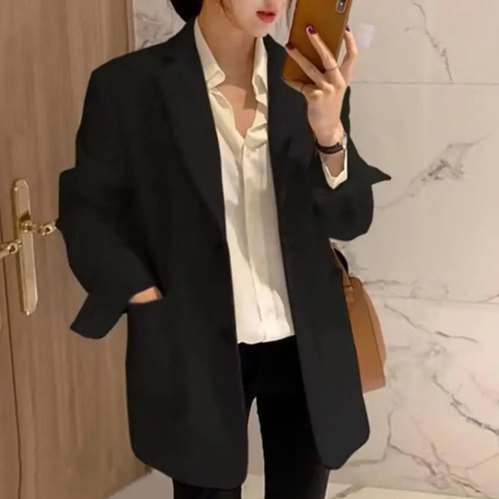 Suit Coat Elegant Lapel Suit Jacket with Flap Pockets Cuff Button Detail for Women Stylish Work Outwear for A Sophisticated Look