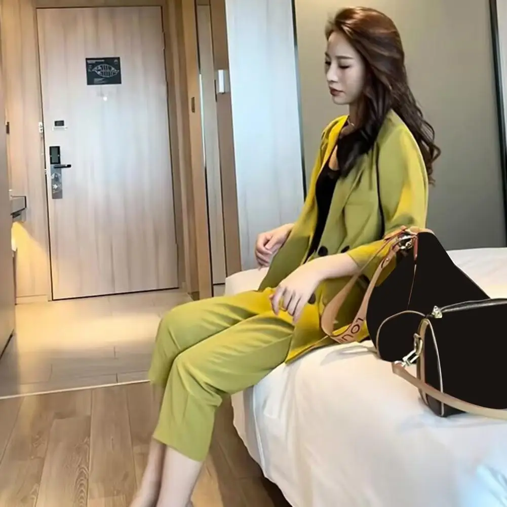 Women Suit Coat Elegant Women's Double Breasted Suit Jacket with Flap Pockets Everyday Business Outwear with Single Breasted