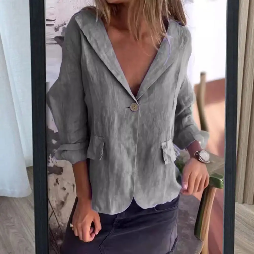 Women Versatile Coat Elegant Lapel Suit Jacket for Women Stylish Spring Autumn Coat with Single Button Closure Loose for Ladies