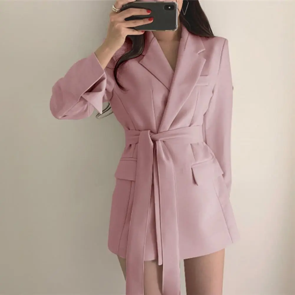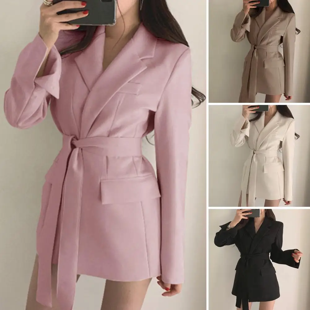 Workwear Suit Coat Elegant Lace-up Lapel Suit Coat with Flap Pockets for Business Outwear