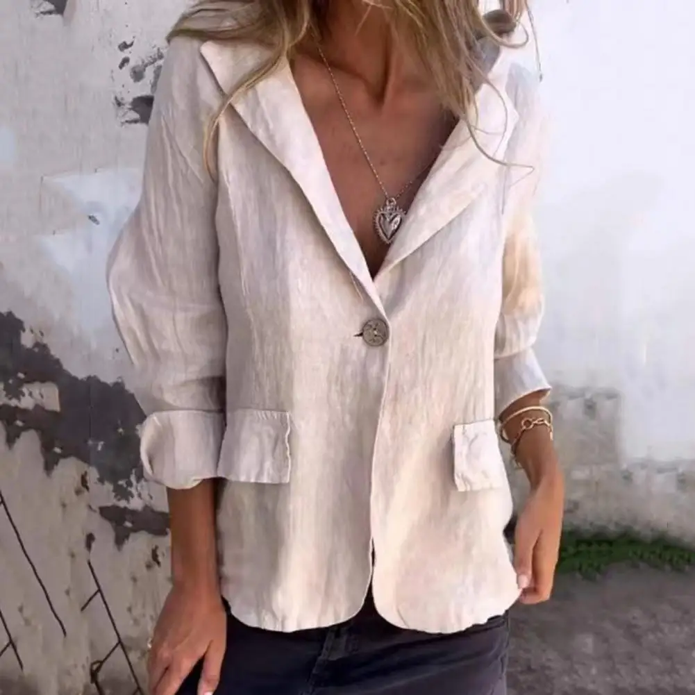 Lapel Suit Coat Elegant Lapel V-neck Women's Suit Coat with Flap Pockets for Business Outwear in Spring Autumn Thin Suit Coat