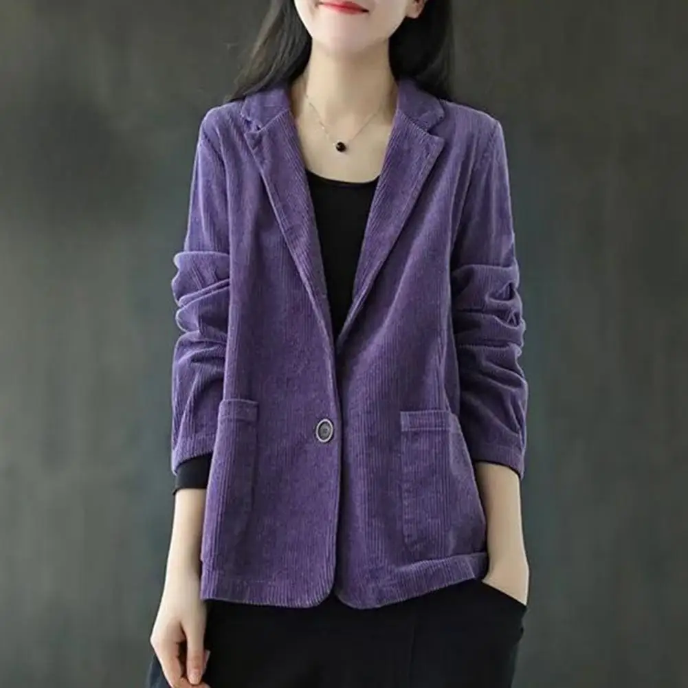 Business Coat with Pockets Retro Corduroy Suit Coats for Men Women Slim Fit Single-breasted Jackets with Pockets Lapel Long