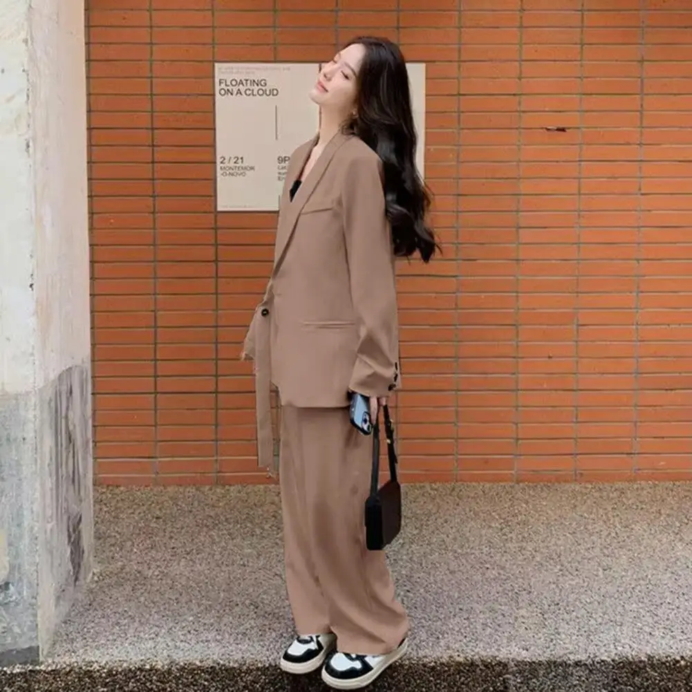 Casual Lapel Suit Coat Stylish Women's Business Suit Coat Lapel Long Sleeve Side Button Lace-up Jacket with Pockets for Office