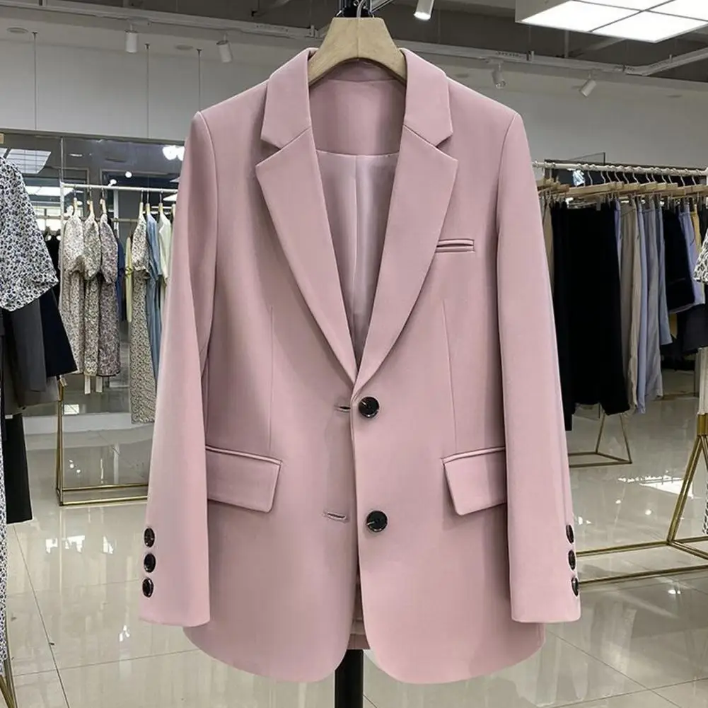 Women Suit Jacket Elegant Lapel Suit Coat for Women with Flap Pockets Liner Stylish Single Breasted Work Jacket for Office Lady