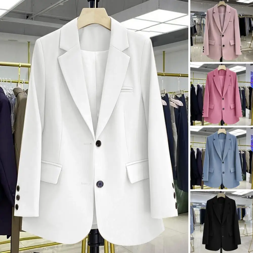 Women Suit Coat Fully Lined Suit Jacket Elegant Lapel Suit Coat for Women with Flap Pockets Liner Stylish Single for Office