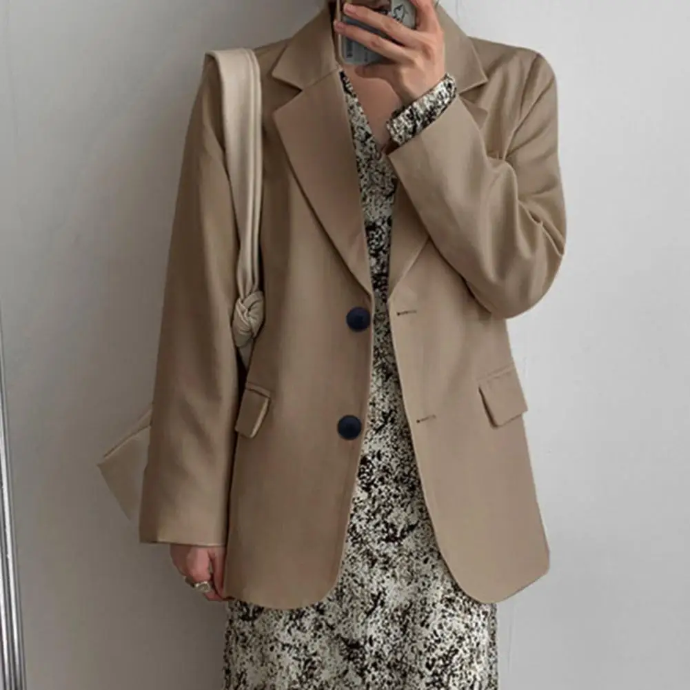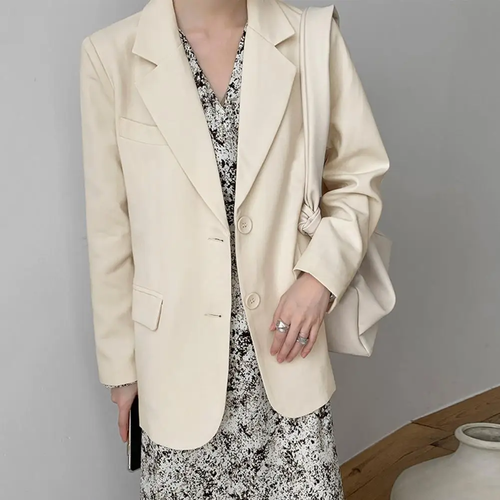 Lightweight Suit Coat Elegant Lapel Suit Coat for Women Long Sleeve Single Breasted Jacket with Flap Pockets Solid for Spring
