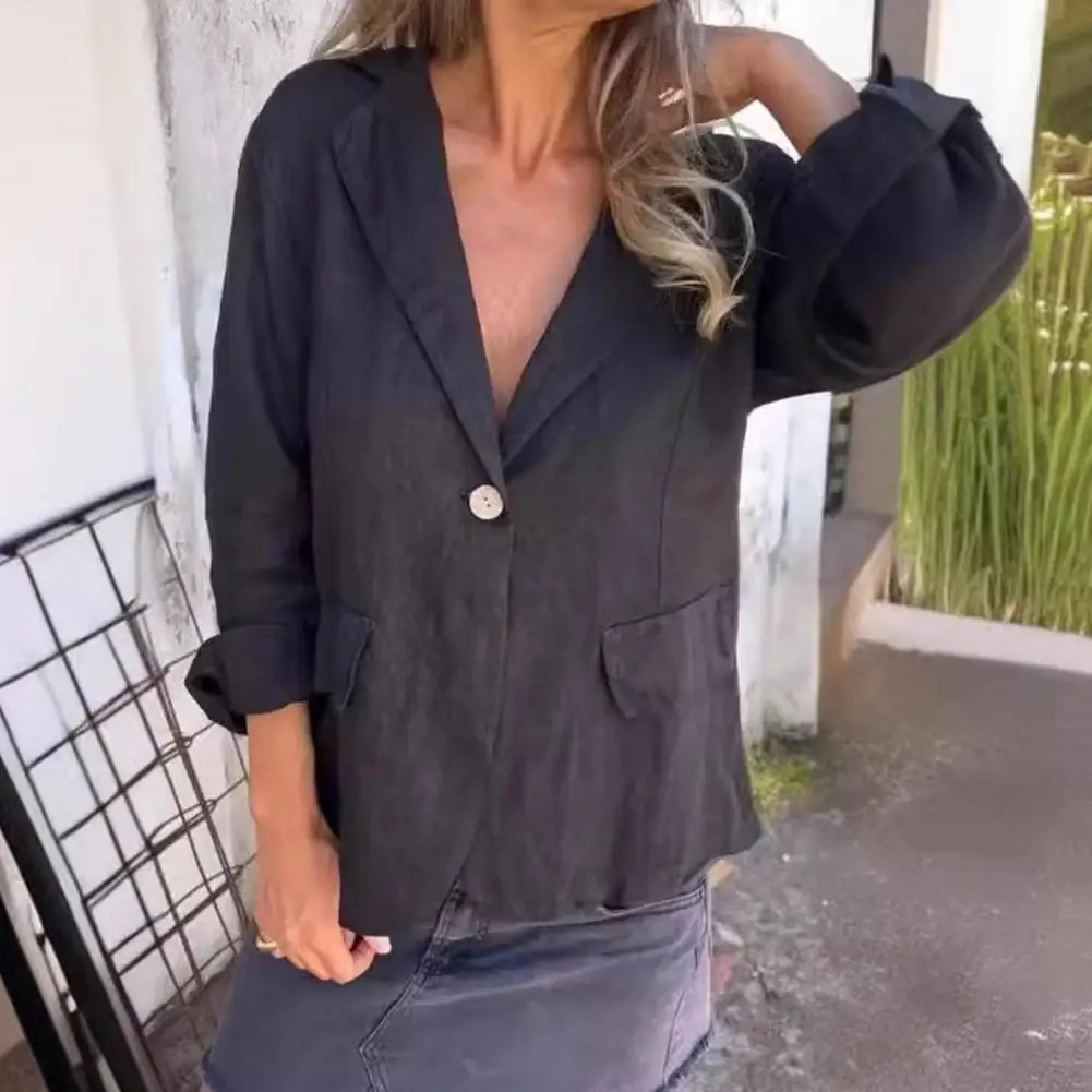 Women Versatile Coat Elegant Lapel Suit Jacket for Women Stylish Spring Autumn Coat with Single Button Closure Loose Fit for A