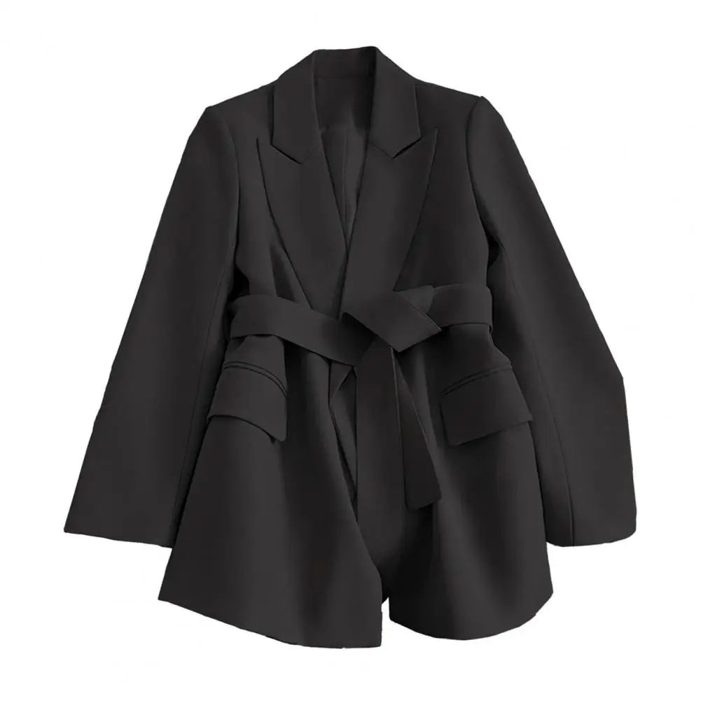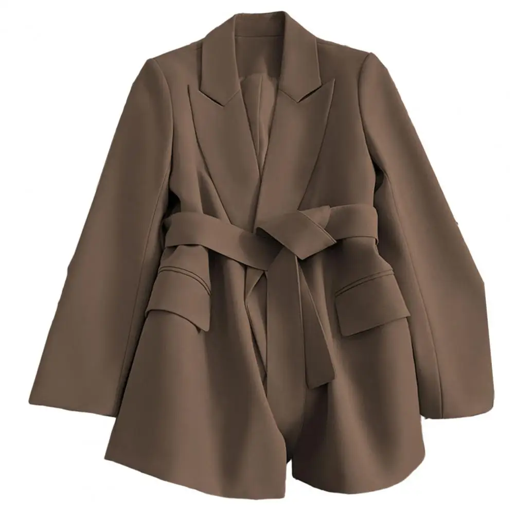 2024 women Suit Coat Formal Business Style Slim Belted Waist Long Sleeve Fake Pockets Turn-down Collar OL Commute