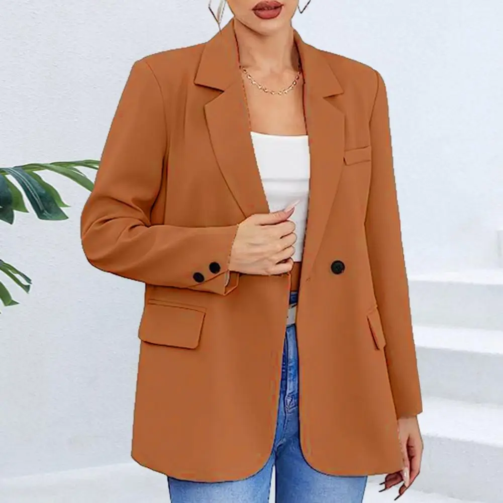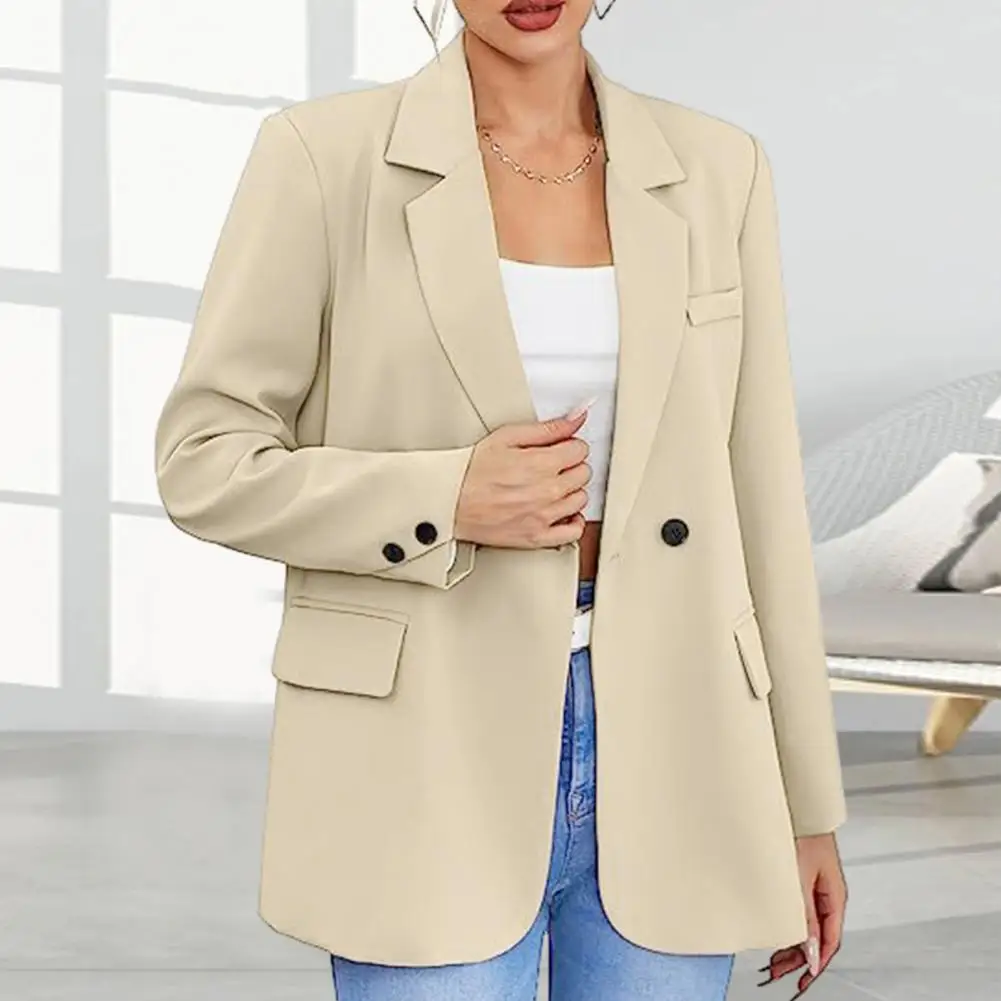 Women Fall Spring Coat Formal Business Style Slim Fit Solid Color Notch Collar Single Button Cardigan Anti-wrinkle Lady Jacket