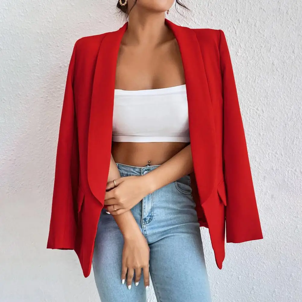 Women Suit Coat Elegant Lapel Suit Coat for Women Stylish Open Front Business Outwear Solid Color Loose Fit Jacket for Work