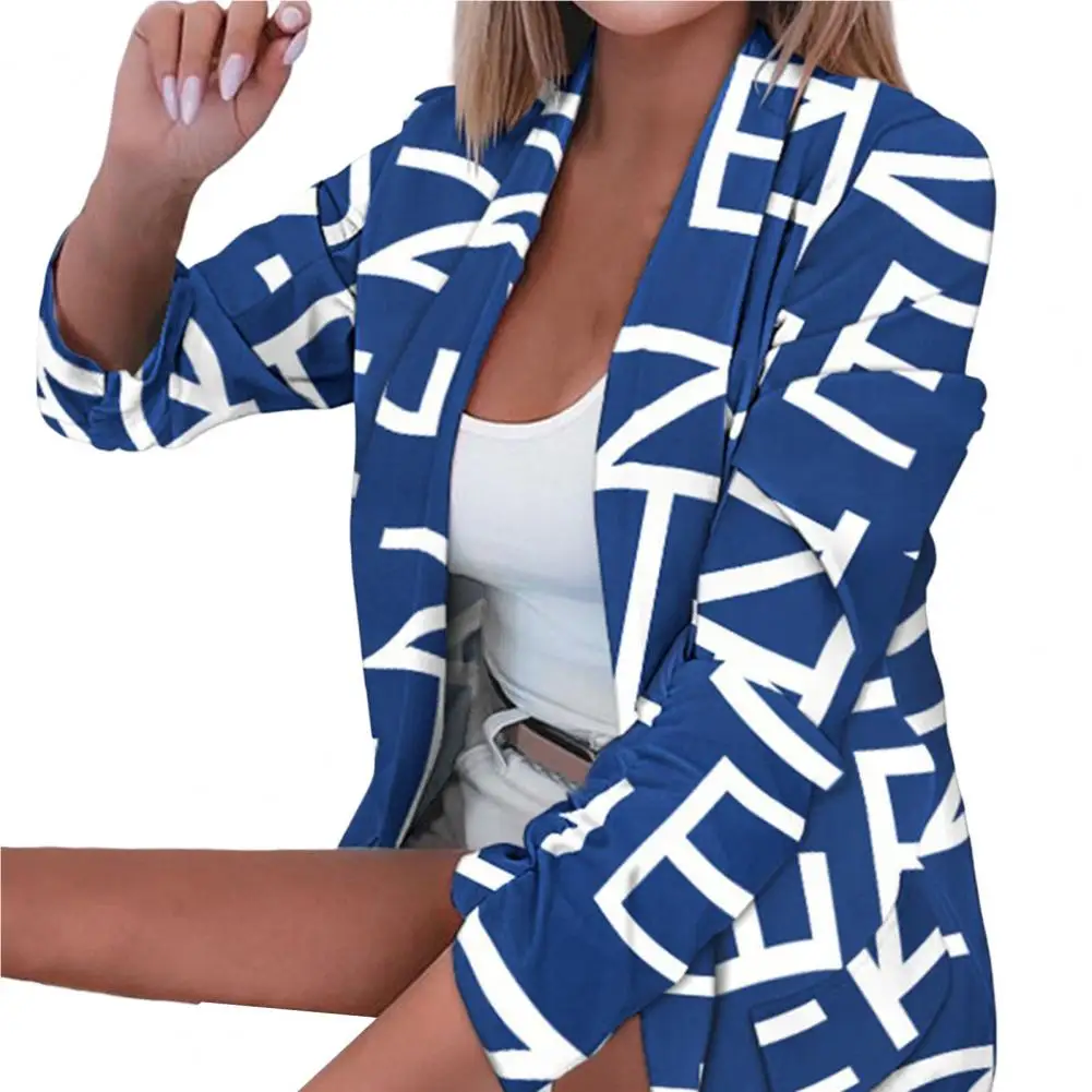Lapel Long Sleeves Flap Pockets Slim Fit Women Blazer Autumn Winter Office Jeans Patchwork Pattern Single Breasted Suit Jacket