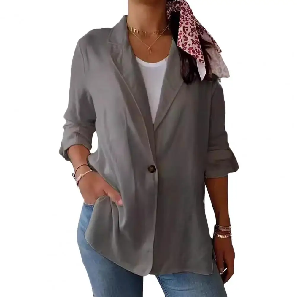 Women Suit Coat Lapel Long Sleeve Single Breasted Suit Jacket Side Slit Hem Solid Color One Button Business Outwear