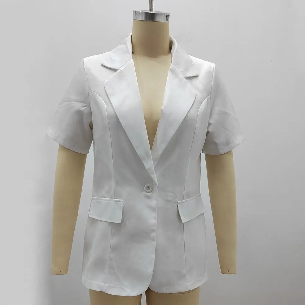 Women Blazer Anti-wrinkle Loose Cardigan Short Sleeves Single Button Formal Suit Coat Clothing