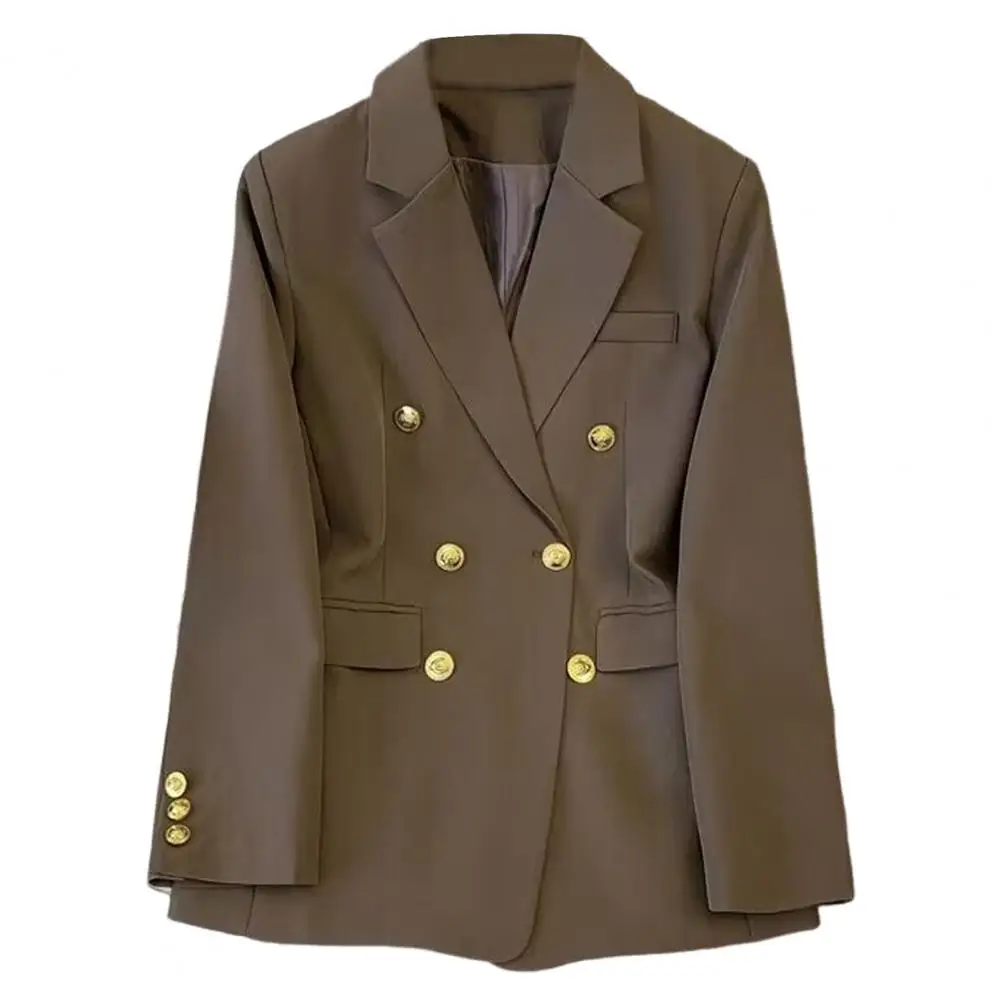 Slimming Effect Suit Coat Elegant Women's Double Breasted Suit Jacket with Lapel Slim Fit Work Outwear Solid Color for Office