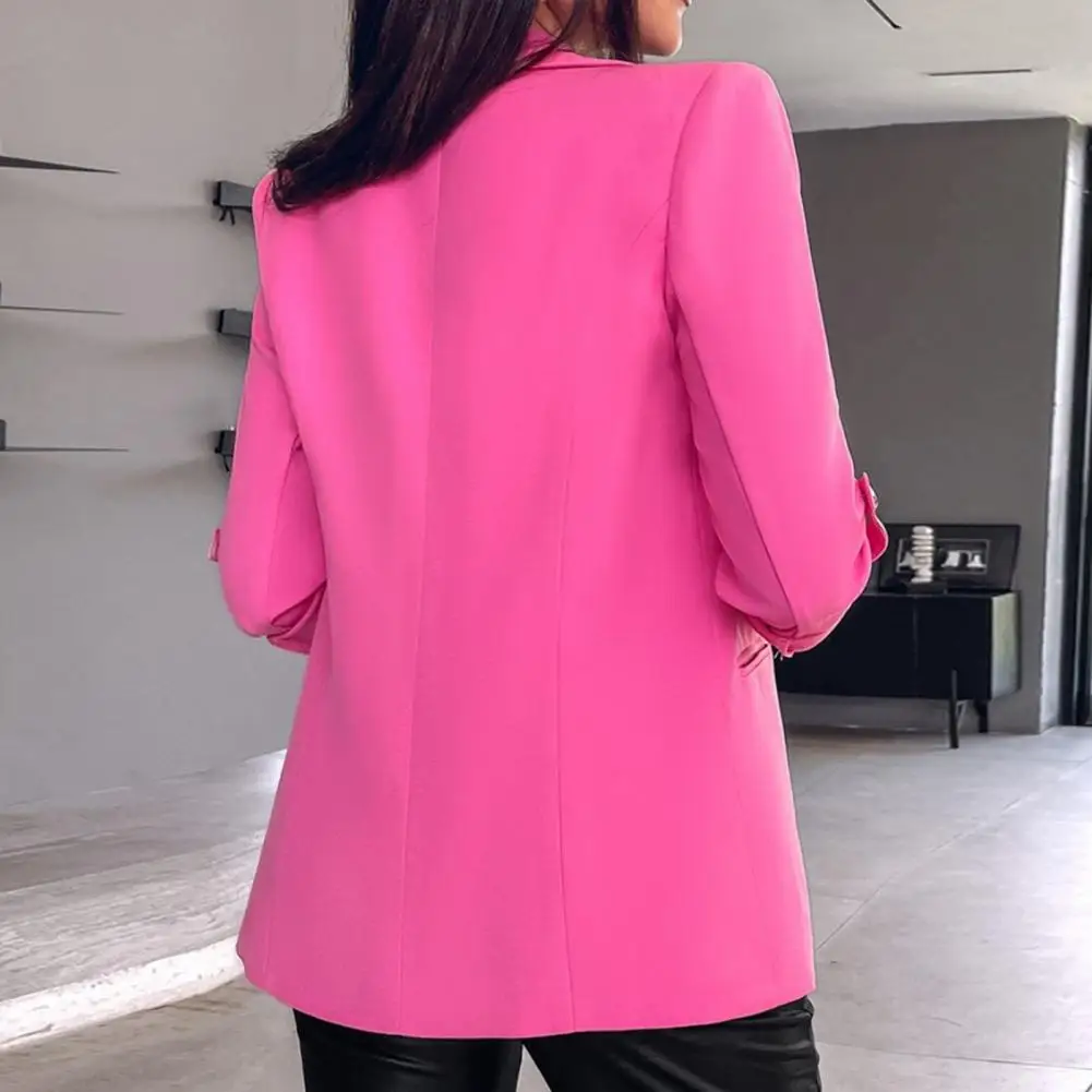Fall Winter Elegant Women's Business Suit Coat for Autumn Winter Long Sleeved Lapel Cardigan in Solid Color Stylish for Daily