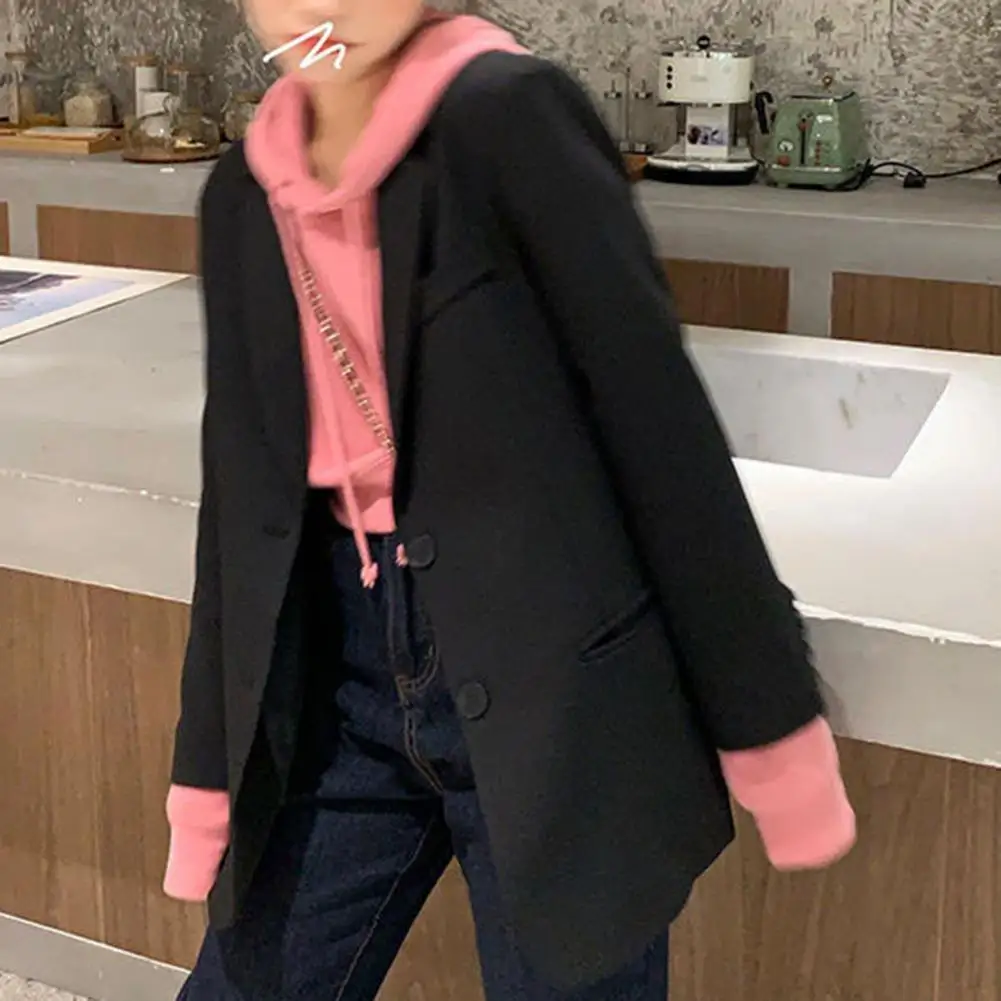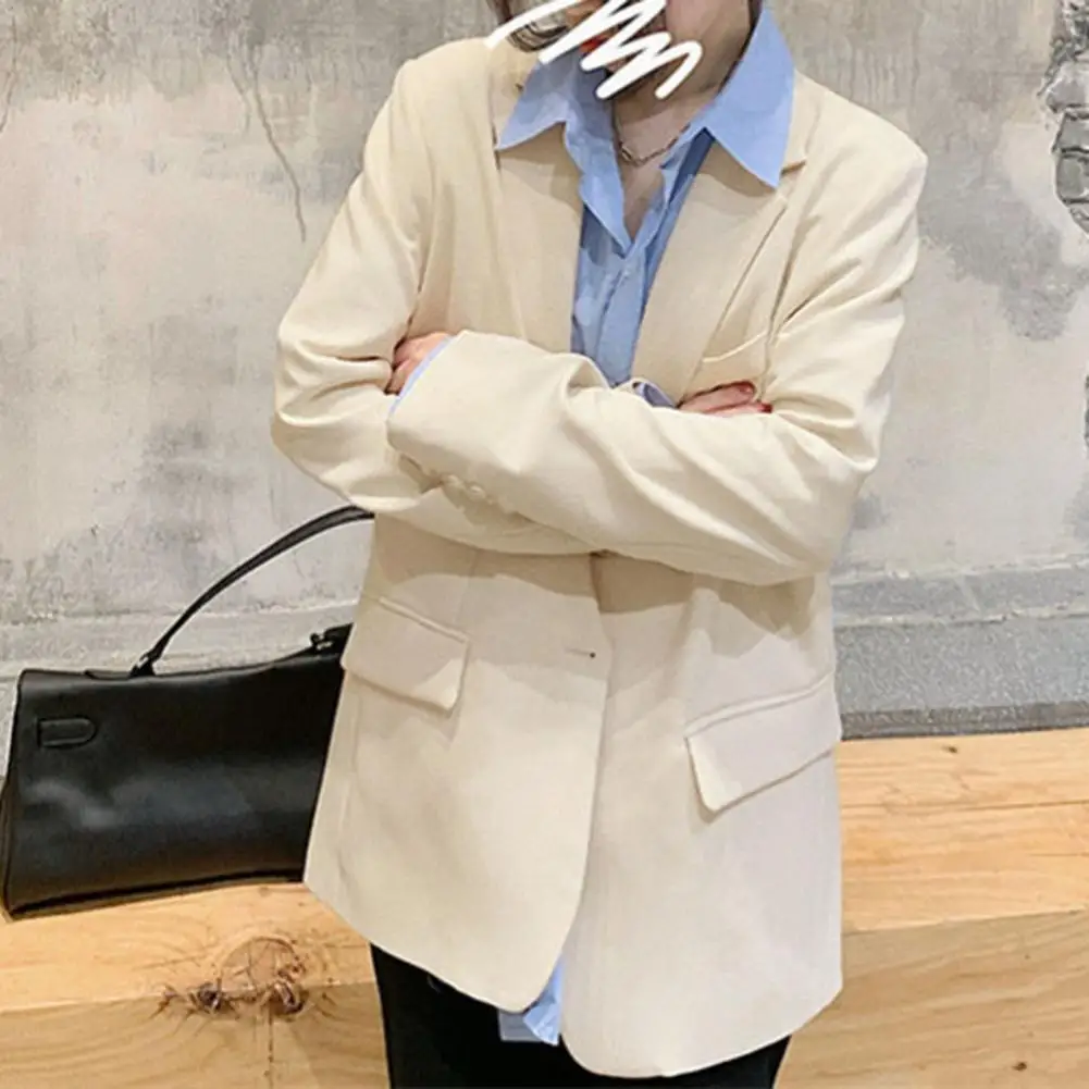 Women Blazer Jacket Suit Coat Basic Women Stylish Lapel Minimalistic Suit Coats for Spring Autumn Classic Loose Fit Suit Coat