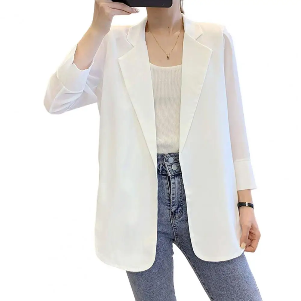 Women Chic Jacket Blazer Long Sleeves Lapel Notch Collar Anti-UV Straight AD Keep Warm Coat Clothes