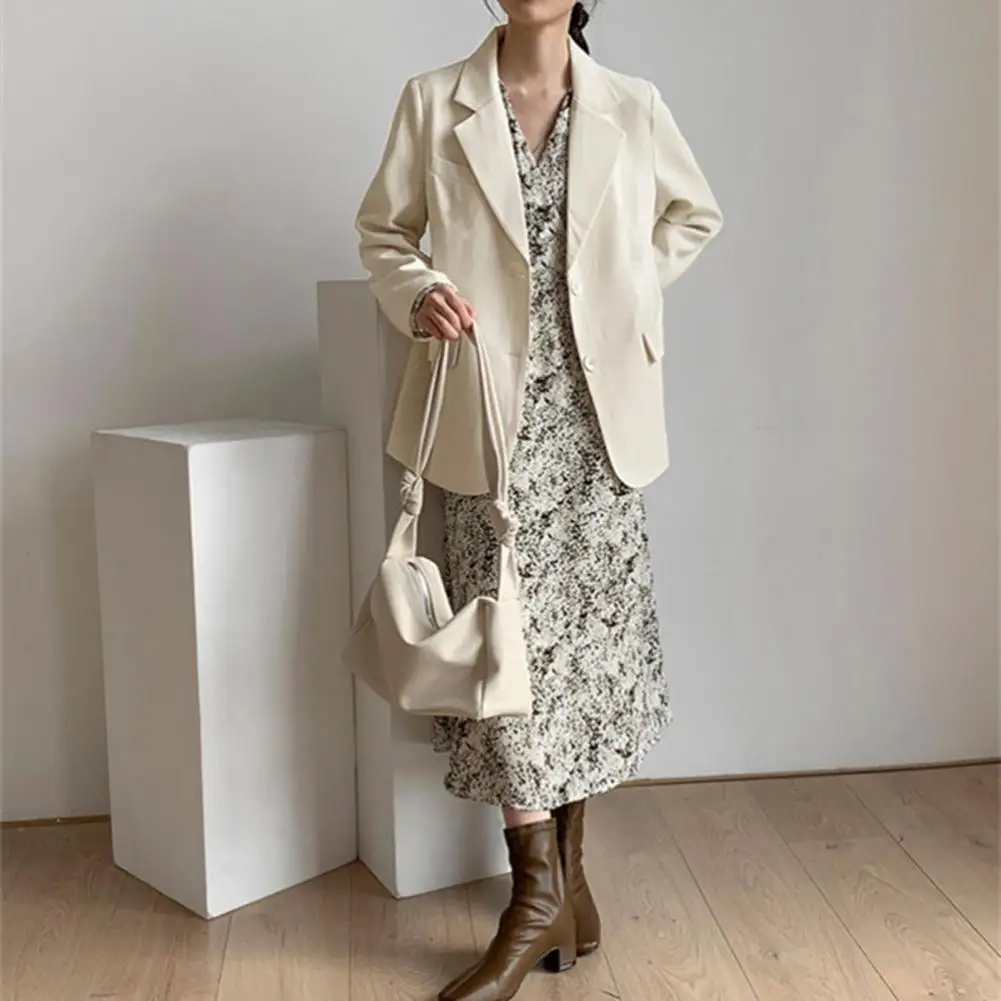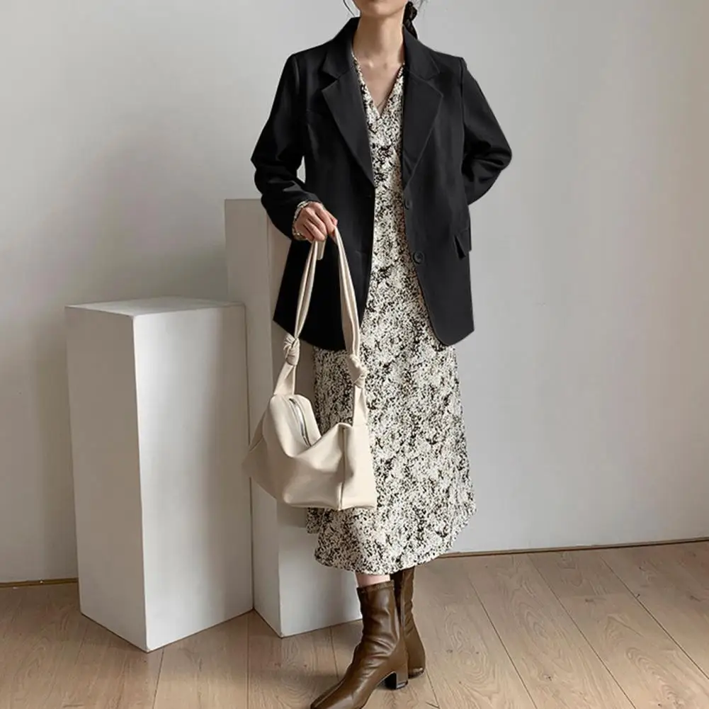 Basic Solid Color Suit Coat Elegant Women's Suit Coat with Lapel Flap Pockets for Business Outwear British Style for Spring