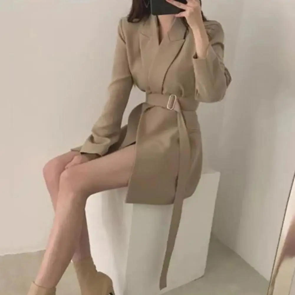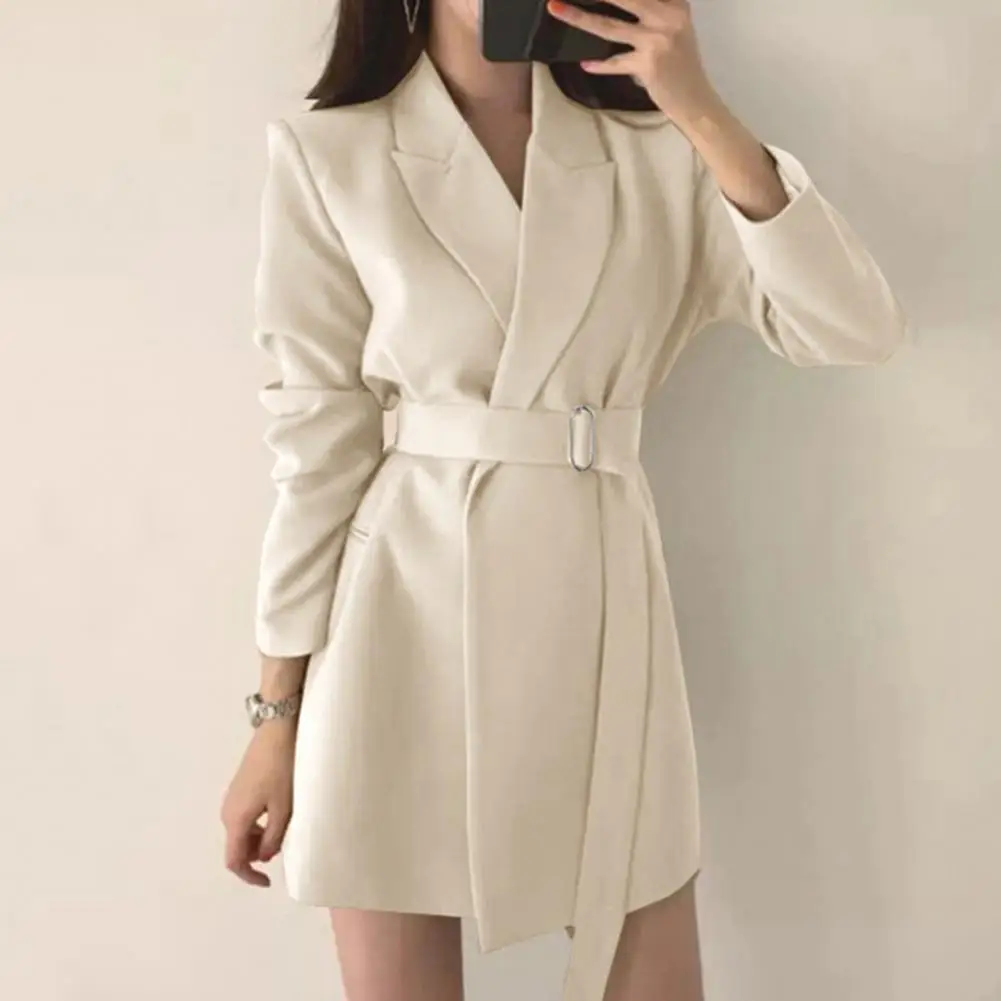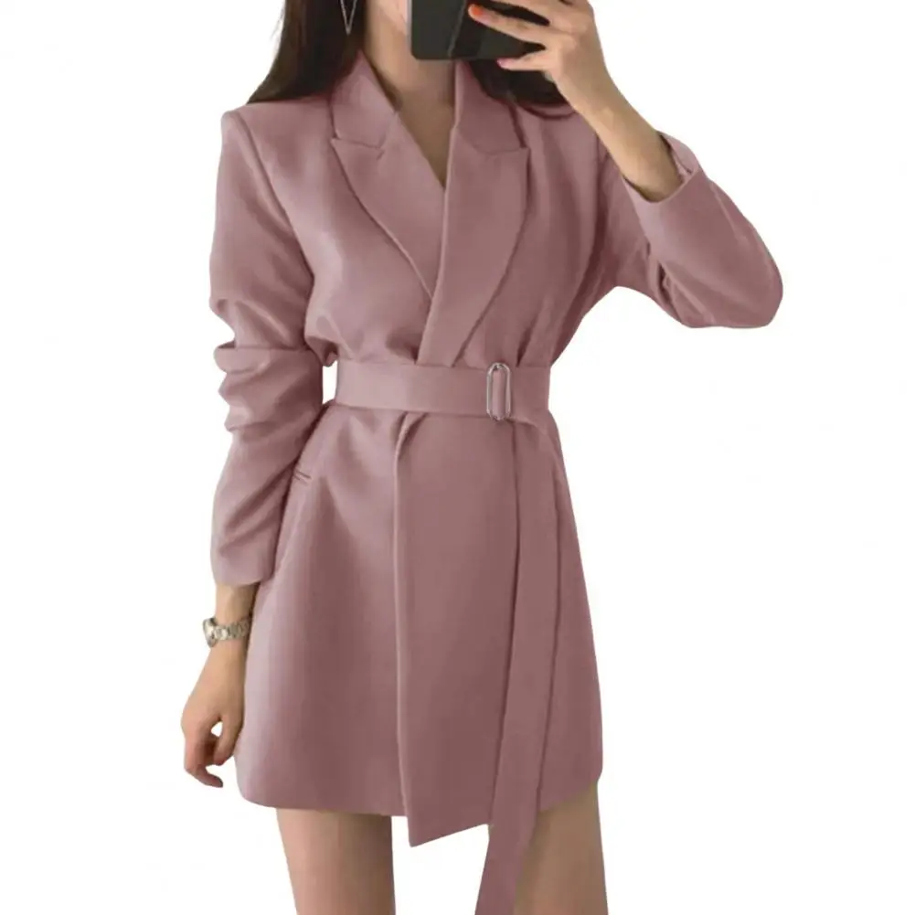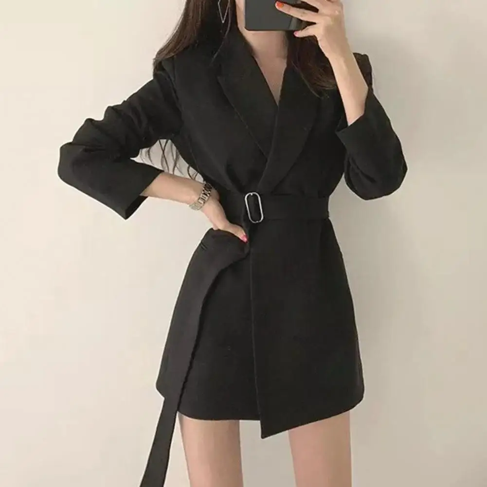 Women Suit Coat Elegant Lapel Suit Coat for Women with Belt Long Sleeve Office Lady Outwear Solid Color Loose Fit for Women